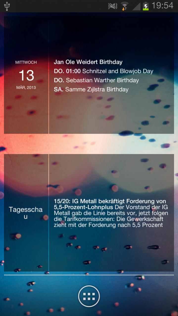 //edit: suche noch nach passenden Widgets für "Alle Töne ausschalten", Assistenzlicht und den Wecker. Die Standard Dinger gefallen mir eigentlich ganz gut, aber da ich alle 3 nebeneinander haben möchte, sieht das komisch aus wenn ich die verkleinere. Vorschläge?