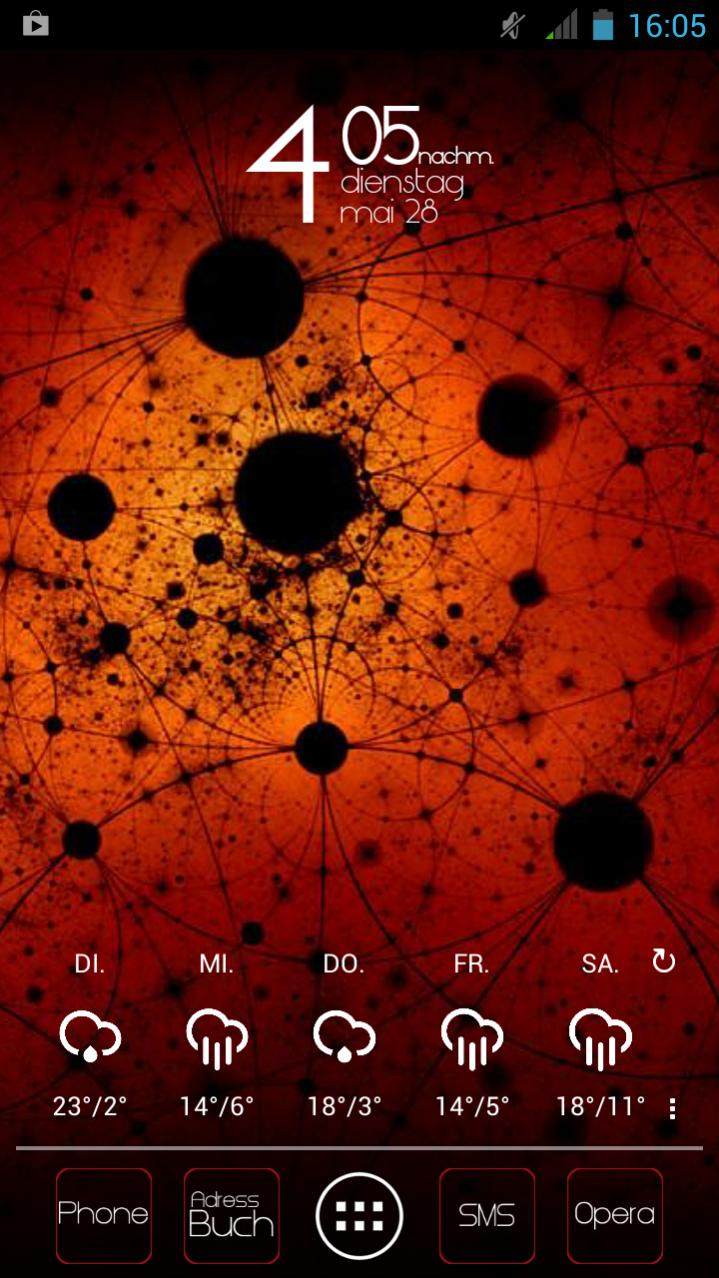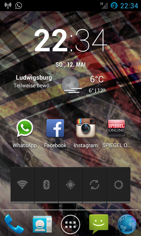 Im Bild der "Hauptscreen", auf den anderen Seiten sind dann die Apps wie Kamera, Galerie, Facebook, Youtube usw...
