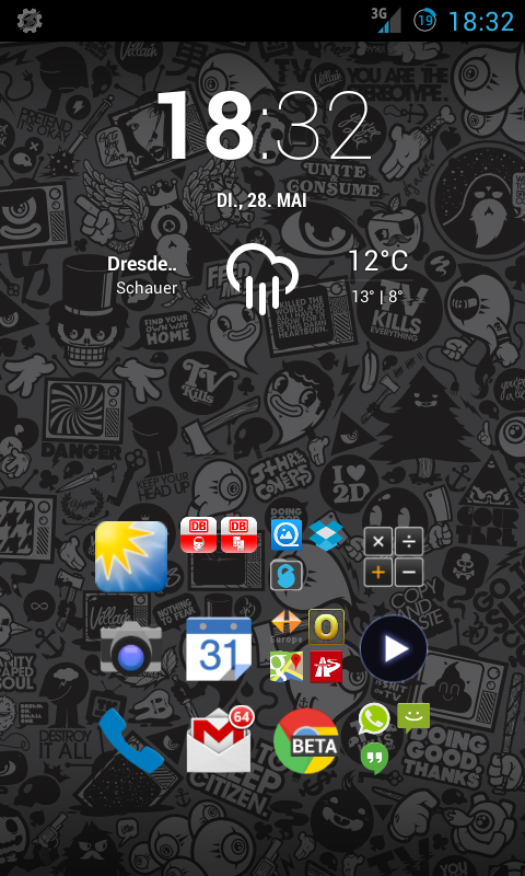 Hab heute verschiedene Launcher durchprobiert und bin dann schließlich beim Nova-Launcher hängen geblieben. Bei der Gelegenheit hab ich auch direkt meine Apps neu sortiert und hab nun nicht mehr einen komplett voll gerammelten Homescreen, sondern mehrere, nach Themen sortierte.