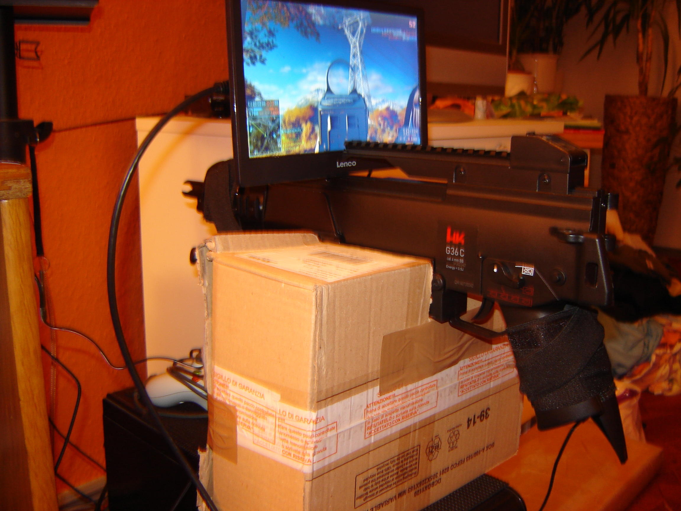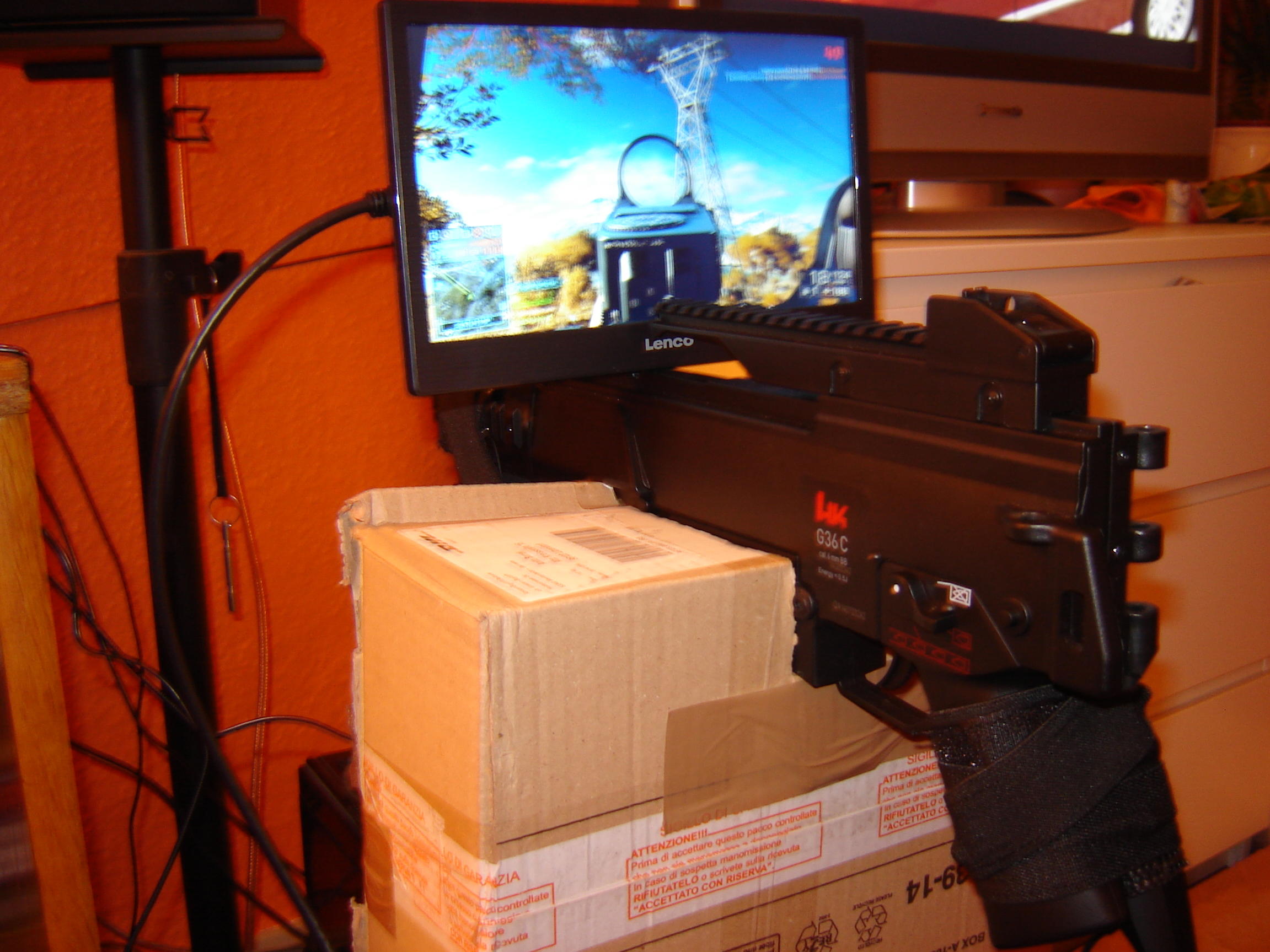 Habe die Gun jetzt mit einem 10 Zoll Screen bestückt um sämtliche FPS zocken zu können. für das Tracking sorgen wie schon gesagt, die Razer Hydra Contoller.