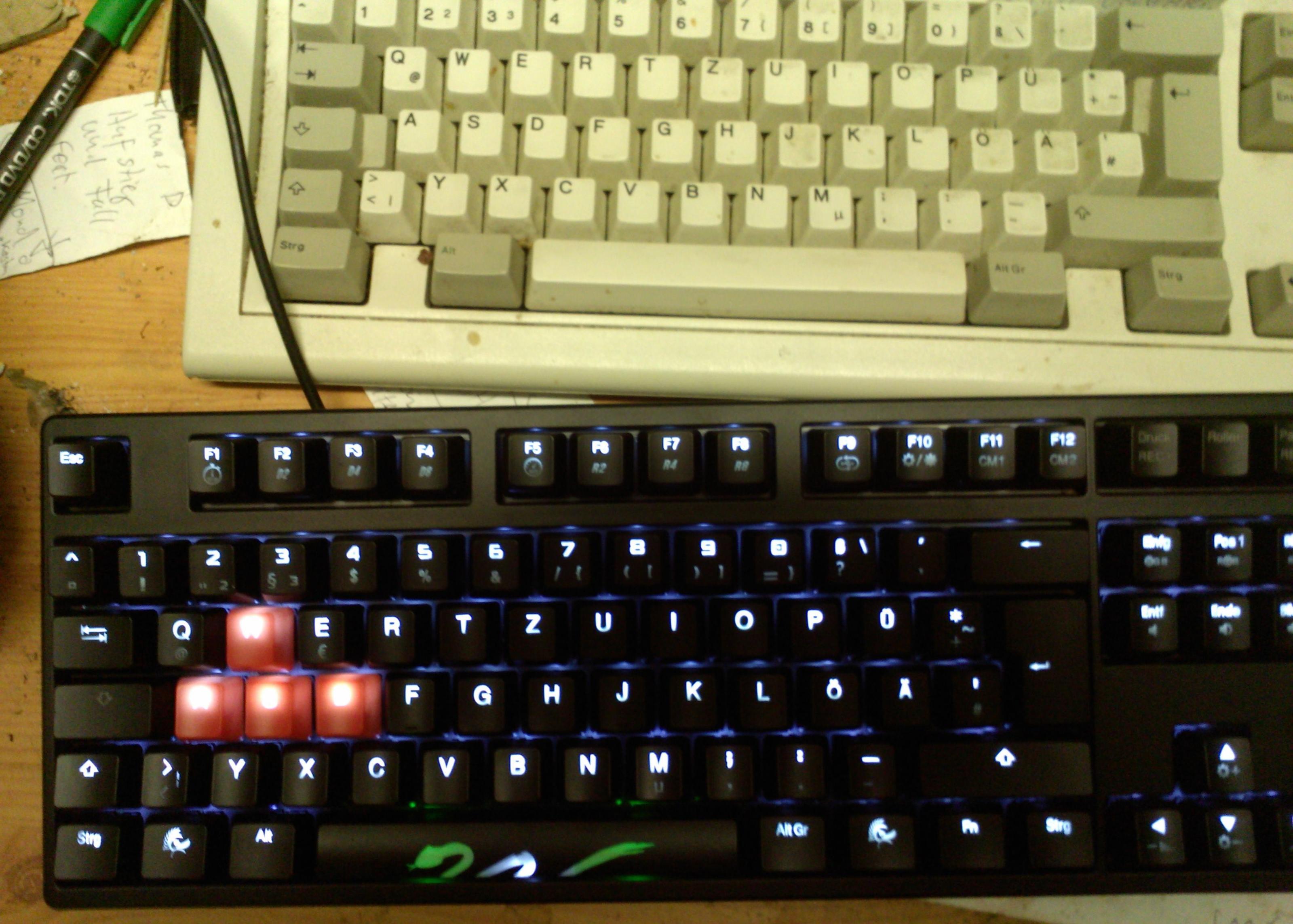 Vor allem diese fünfte Taste, zwischen den Pfeiltasten, die ich beim Zocken einsetze, finde ich gut.