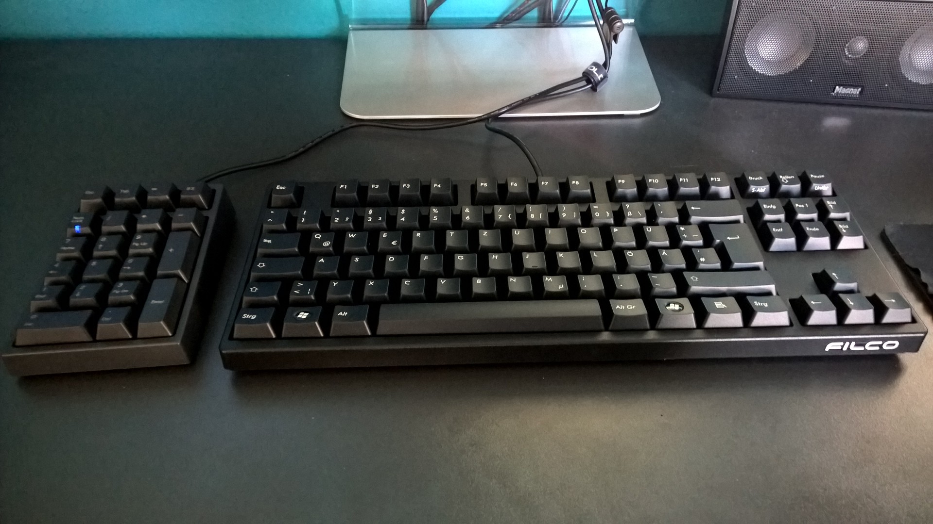 Hier seht ihr mal zwei von meinen Keyboards. Die Varmilo VA87M (MX-Red) und die Poker 2 (MX-Red). Die Varmilo ist mein absoluter Liebling! Die Qualität kommt auf den Bildern nicht annähernd so gut rüber als in der Wirklichkeit... Die Tastatur ist einfach der Hammer! Die Mint-Keycaps geben dem Ganzen noch den perfekten Touch... I LOVE IT! Meine CM NovaTouch TKL (Topre 45G) ist leider nicht auf den Bildern, da diese bei der Arbeit steht... (:
