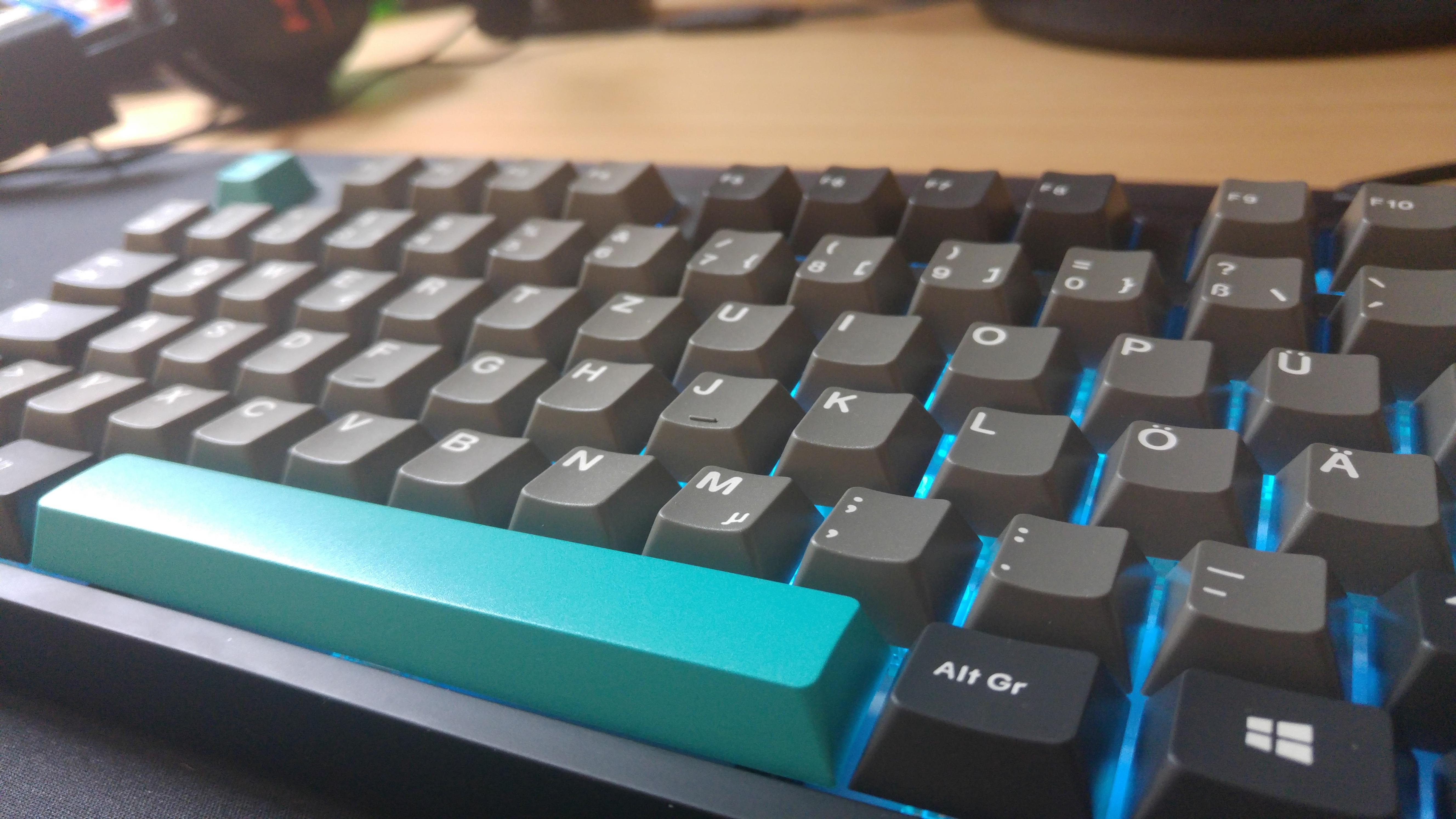 Das Ice-Blue kommt richtig geil mit den backlight Overwatch-Caps zur Geltung und im Vergleich zu meinem Keycool-22, was ich zuvor hatte, finde ich das Qisan alles in allem viel besser, was in erster Linie aber an den mega geilen Gateron Reds liegt. es stimmt, was so geschrieben wird. Sind definitiv smoother als Cherry, bezüglich des angeblich größeren Keywobbels kann ich atm aber nichts sagen, finde die nehmen sich da nicht sooo viel.