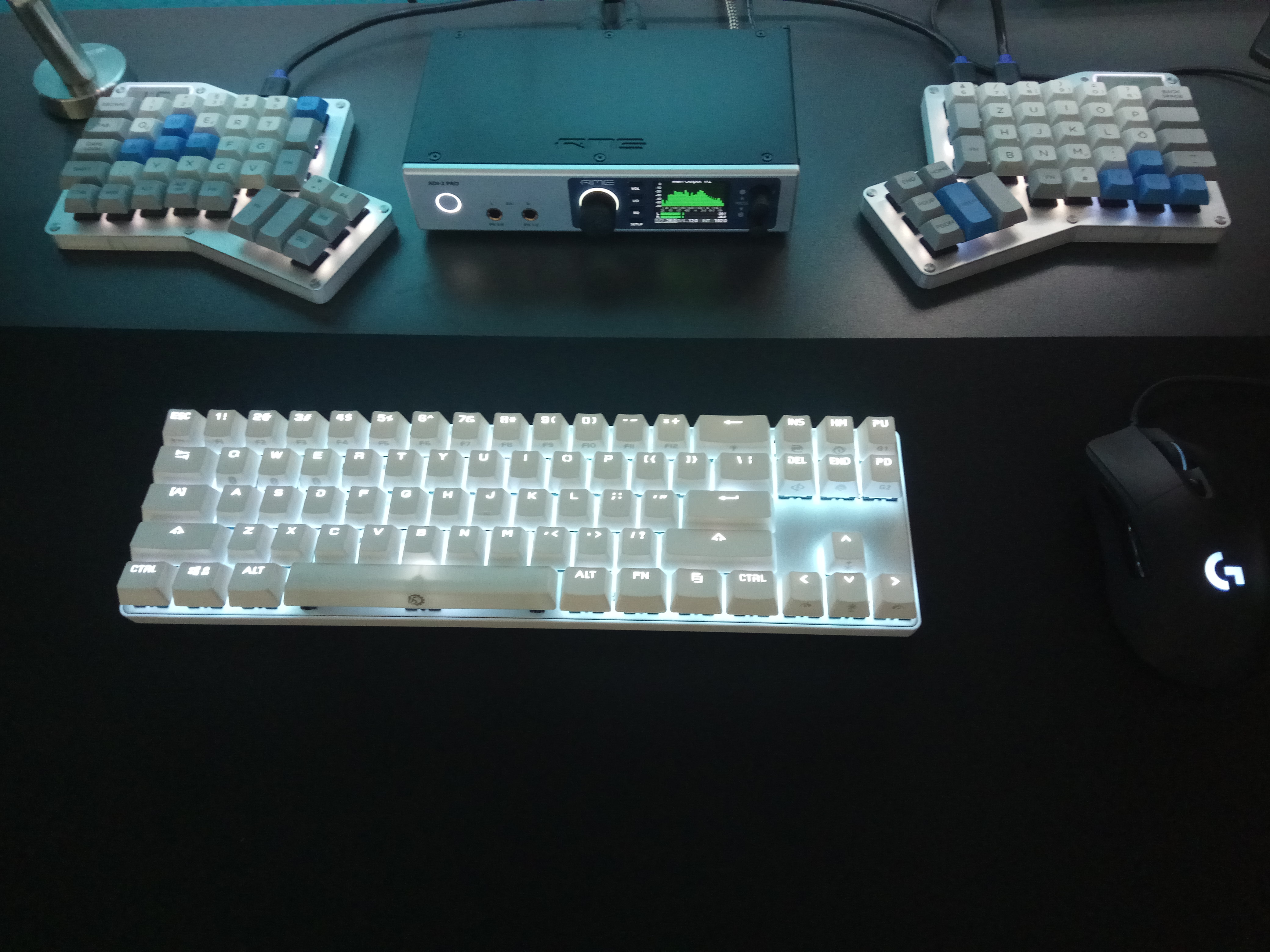 Das Ice-Blue kommt richtig geil mit den backlight Overwatch-Caps zur Geltung und im Vergleich zu meinem Keycool-22, was ich zuvor hatte, finde ich das Qisan alles in allem viel besser, was in erster Linie aber an den mega geilen Gateron Reds liegt. es stimmt, was so geschrieben wird. Sind definitiv smoother als Cherry, bezüglich des angeblich größeren Keywobbels kann ich atm aber nichts sagen, finde die nehmen sich da nicht sooo viel.