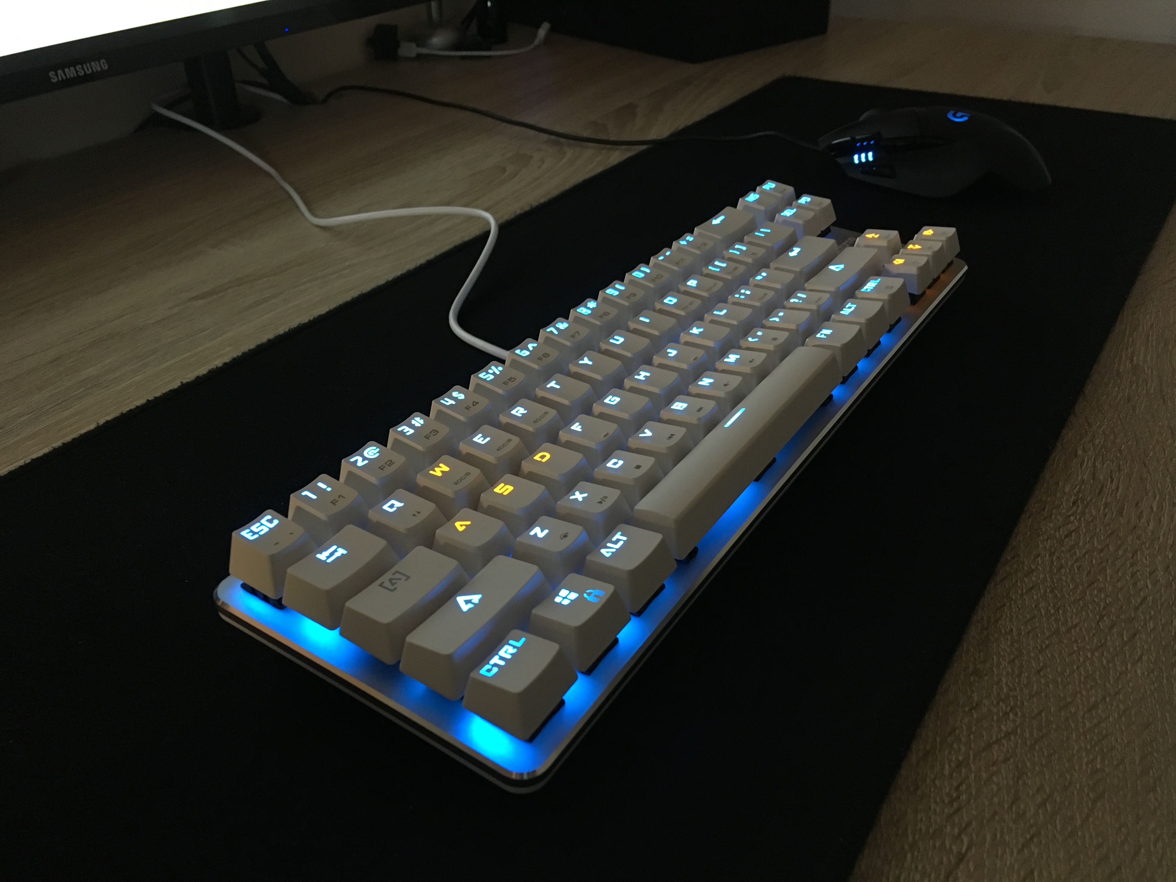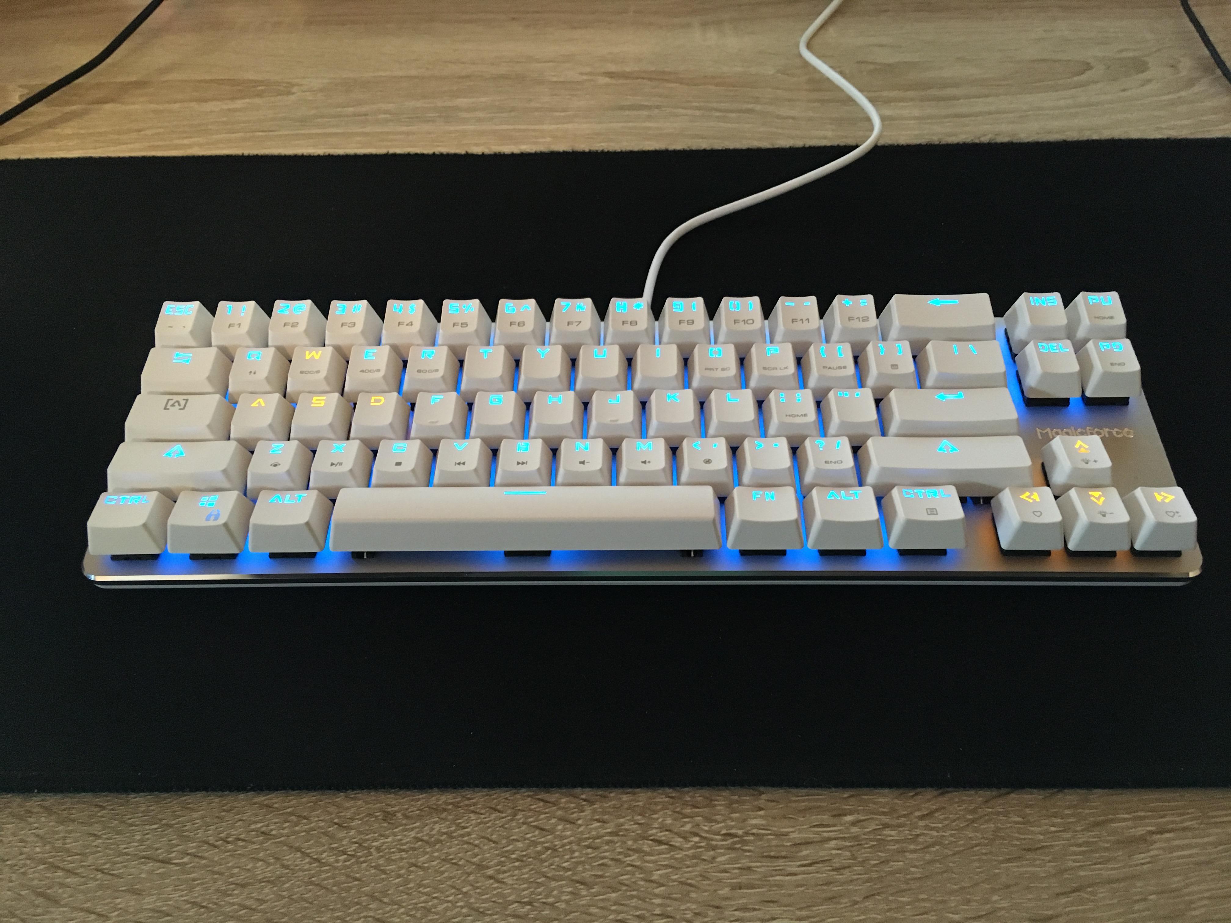 Hallo, ich bin sehr zufrieden mit der Tastatur und die Verarbeitung ist auch gut. Die Beleuchtung ist nicht anpassbar, nur die Helligkeit und ein aufblink Effekt. Die Tastatur macht keine Geräusche. Gekauft habe ich die bei Amazon. https://www.amazon.de/dp/B01AA4P2RG...A4P2RG&childASIN=B01AA4P2RG&tag=geizhals10-21