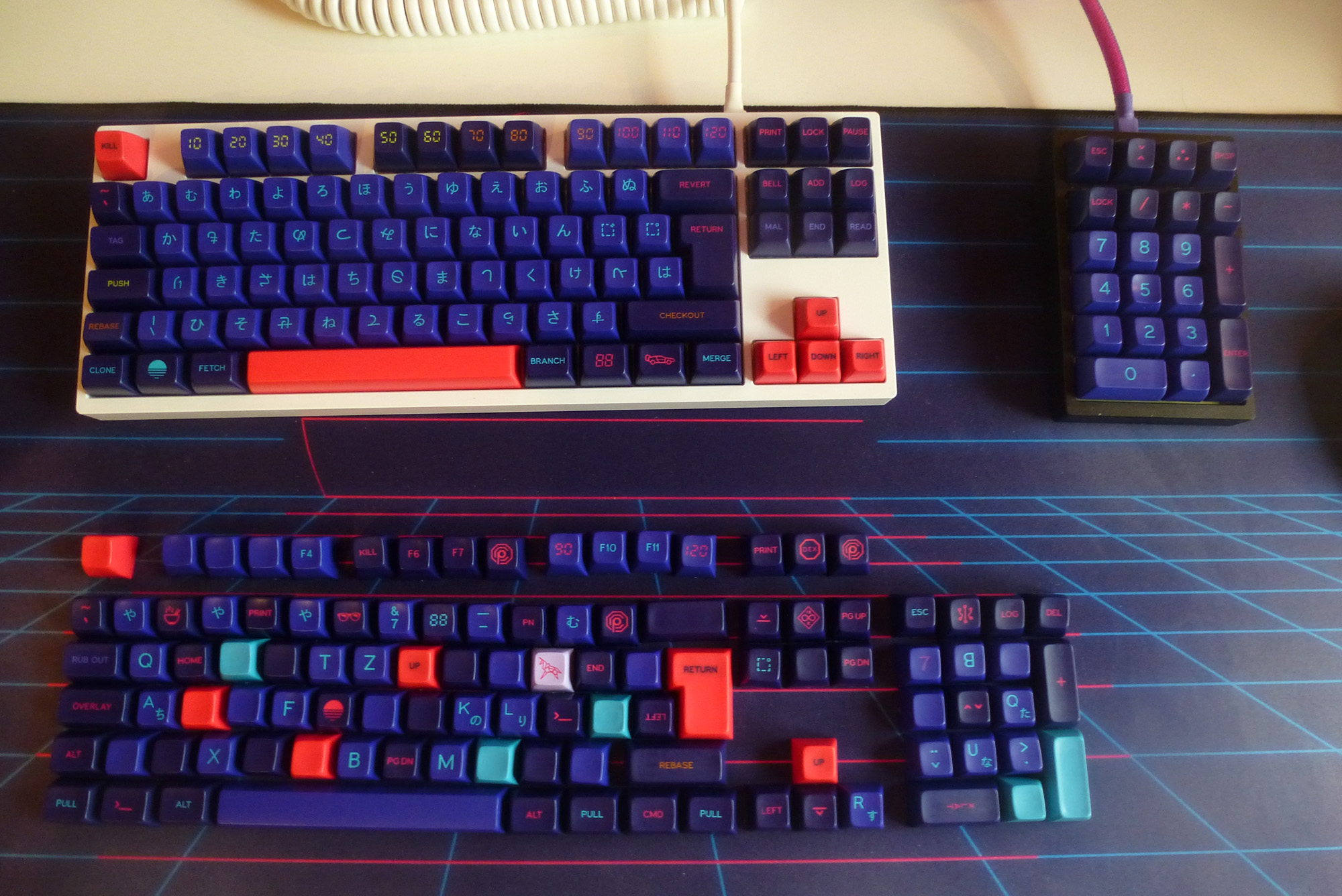 meine vollendete 8X mit SA laser mit dem dazugehörigen numpad, darunter ein fast 100% korrektes laser vomit iso layout aus der letzten grab bag. gefühlt bestand die halbe tüte aus laser caps