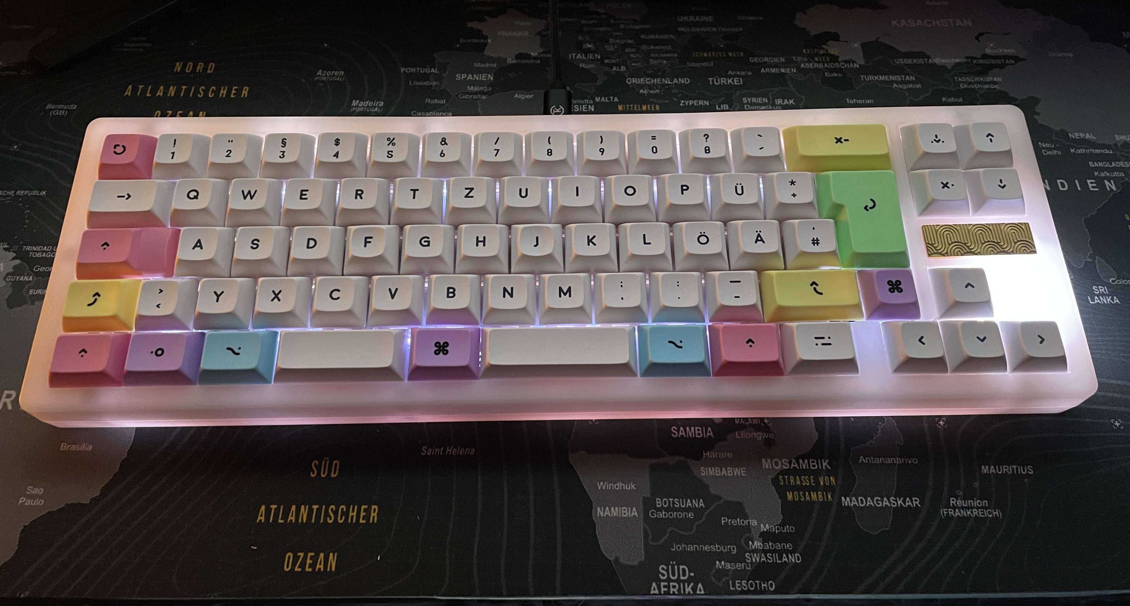 Was ihr alle für geile Ideen habt mit euren Tastaturen. Ich schaffe es nichtmal für meine Epomaker passende Keycaps zu finden, die auch backlit-fonts haben. (Suche Hauptfarbe Weiß, mit Orange und etwas schwarz) meine Farben.