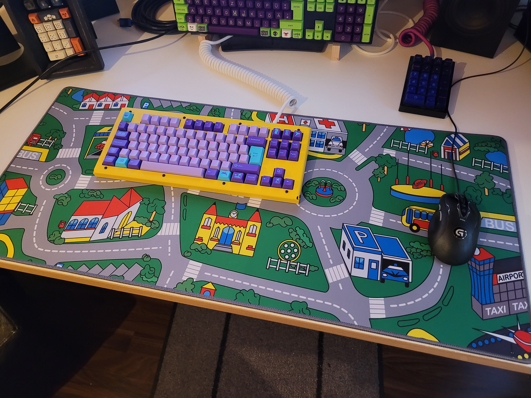 Die Keys sind eigentlich für die im Groupbuy bestellte Zoom TKL gedacht. Bei der hab ich ja noch ein paar mehr Sinnlos-Tasten (PrtScr und so...) die mit Novelties bedacht werden können. Das Set ist nur mal temporär im Quick und Dirty Modus auf die Q1 geflogen.