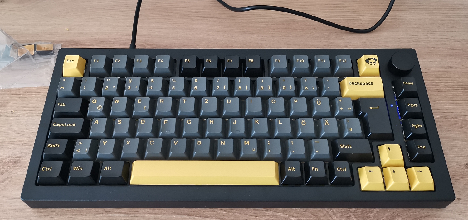 Ganz klassisch mit Alu Plate und Top Mount gebaut. Ist mal was anderes als die ganzen Gasket Mounts die ich sonst so habe. Bisschen Flex hat das Ding sogar noch, aber natürlich nicht mehr viel. Man kann das Ding aber auf allerlei Arten bauen (Top Mount, O-ring, Gasket, Gasket Relief), da muss ich die Tage noch mal bisschen testen. O-ring fand ich jetzt auf den ersten Eindruck nicht so gut.