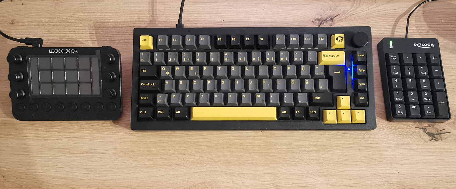 Das Delock Numpad hat gerade einmal 9,95 gekostet, absolut ausreichend und die Doppel-Null hat mir tatsächlich schon ein paar Mal gut geholfen, ohne Extra-Batterie und per USB Kabel angeschlossen. Empfehlenswert. Hauptsache das hält auch ein paar Jahre. Links das Loupedeck live.