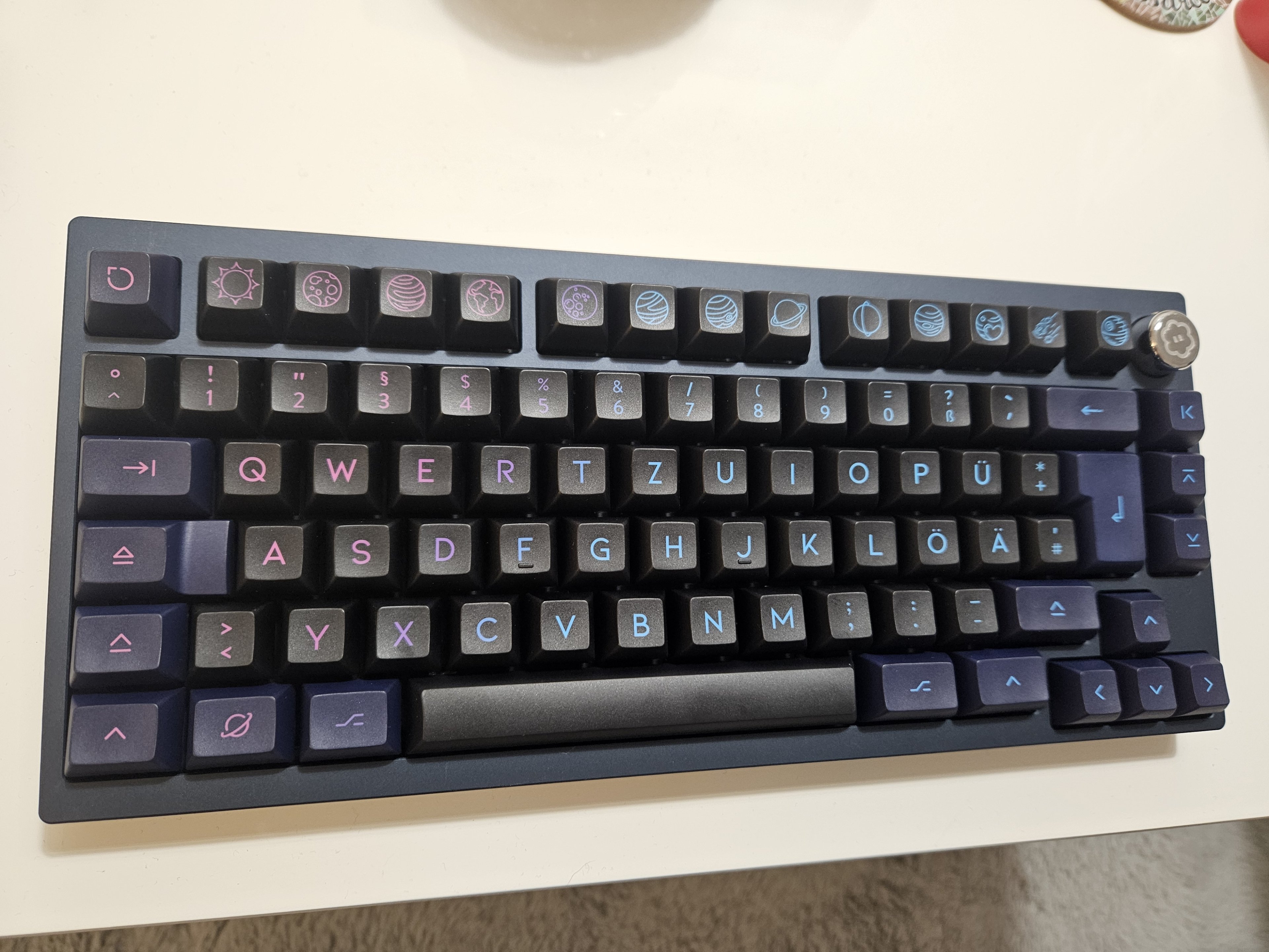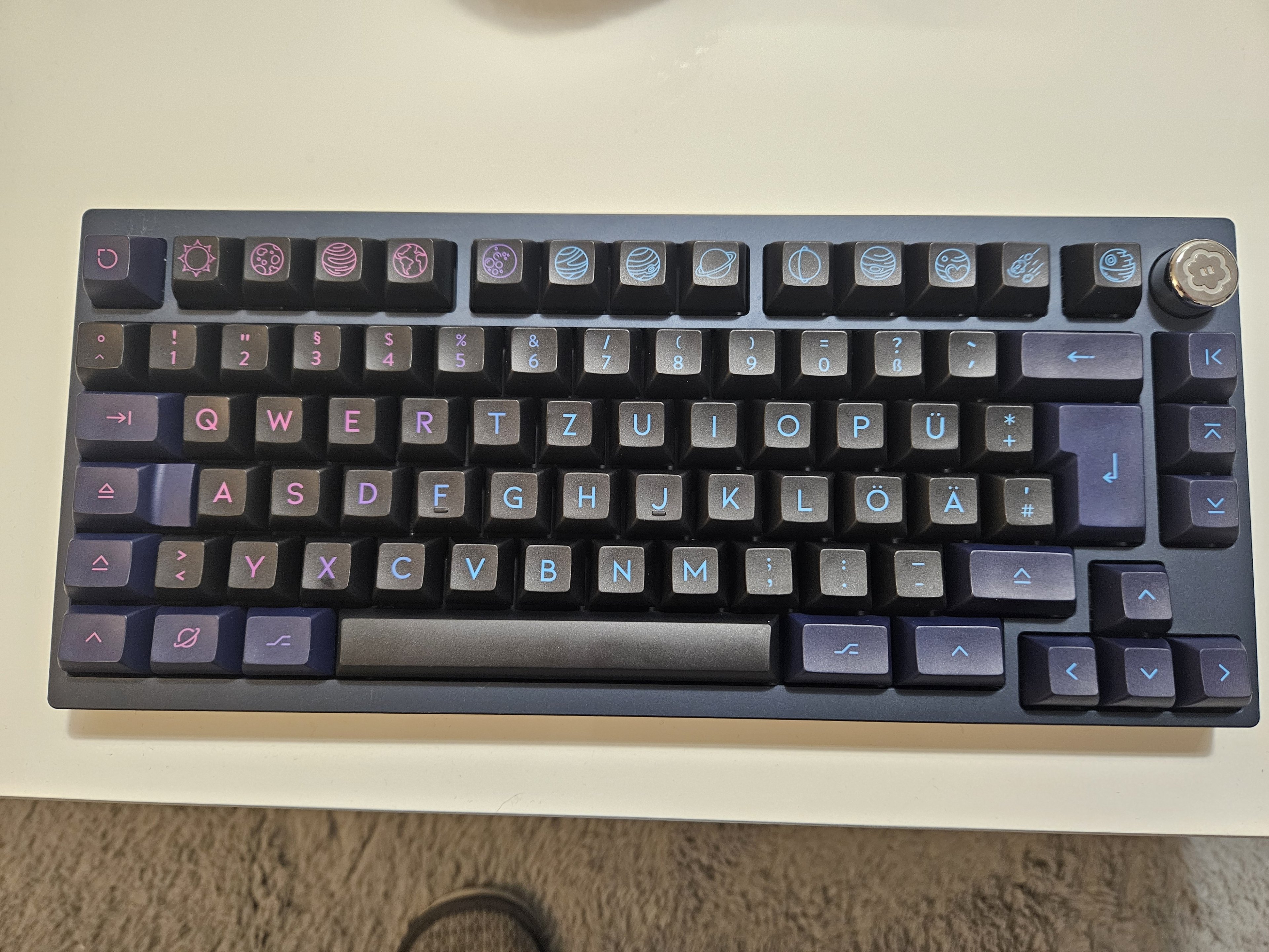 Konnte mich auch nicht so recht entscheiden, nehme ich den Farbverlauf oder nicht. Kurz meine holde Gattin befragt und die sagte ich solle erst einmal die farbigen Keycaps nehmen.