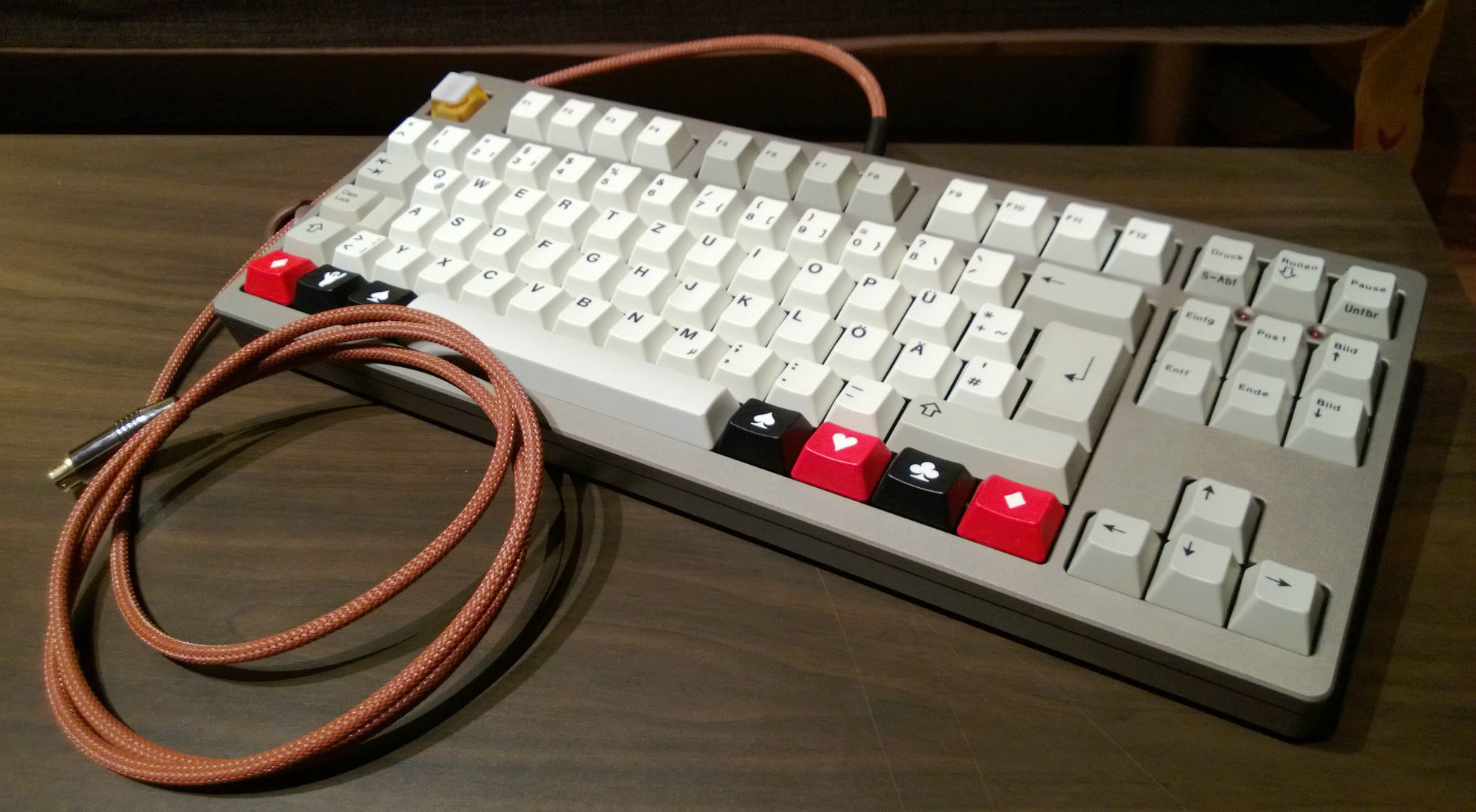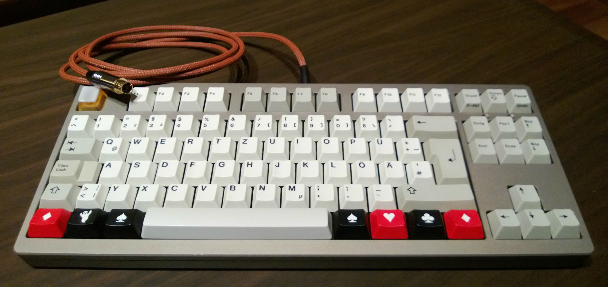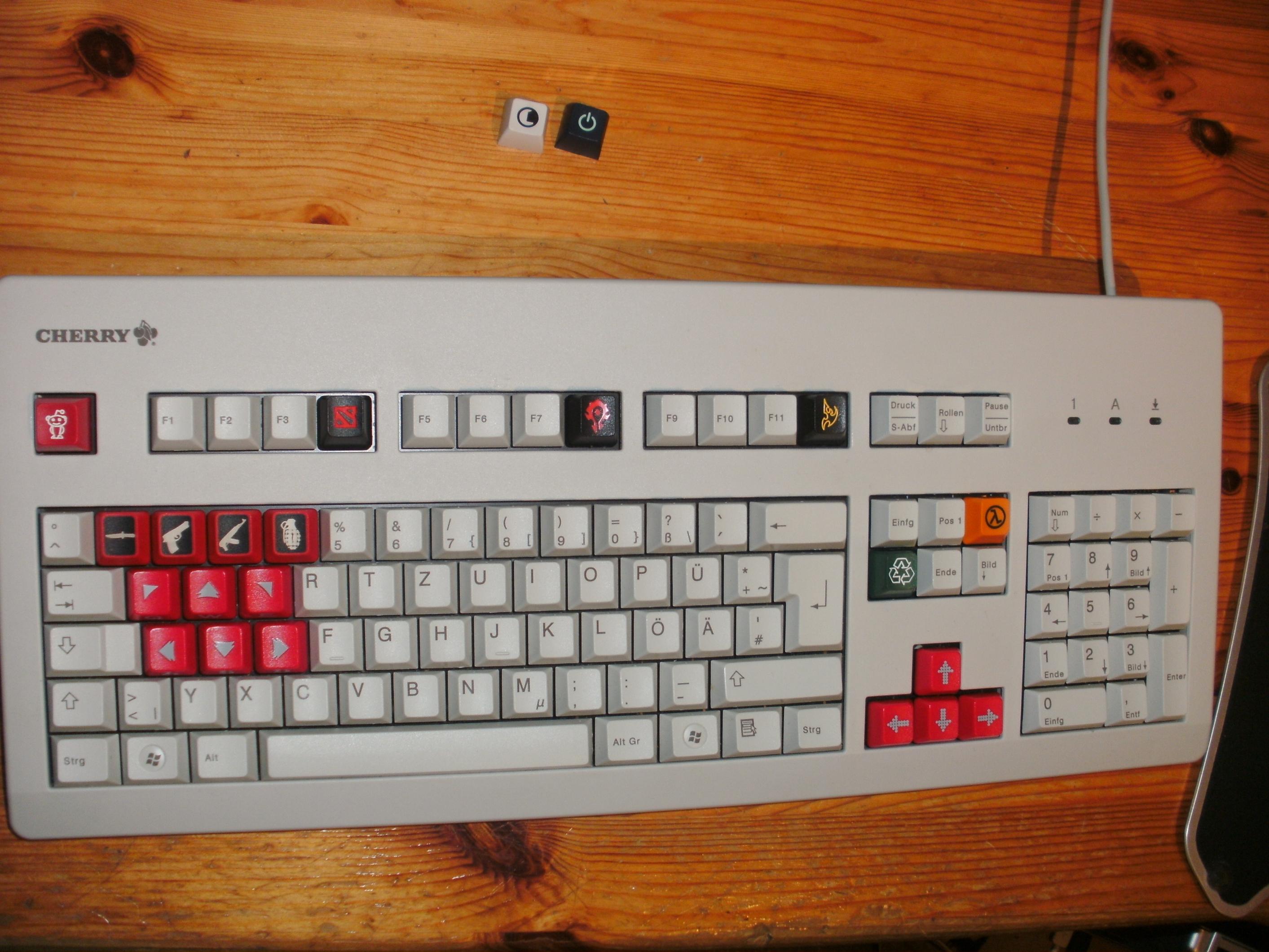 Alte Cherry-Tastaturen mit Doubleshots werden ja gerne gekauft, um die Caps auf seine moderne Tastatur zu schnallen. Da aber die alten Modifier meistens nicht auf die neue Tastatur passen, muß man sich mit einem Moogle-Kit behelfen. Du siehst ja oben auf dem einen Bild, daß das nicht sehr schön aussieht wenn man zu viele verschiedene Kappen in unterschiedlichen Farben auf dem Keyboard hat.