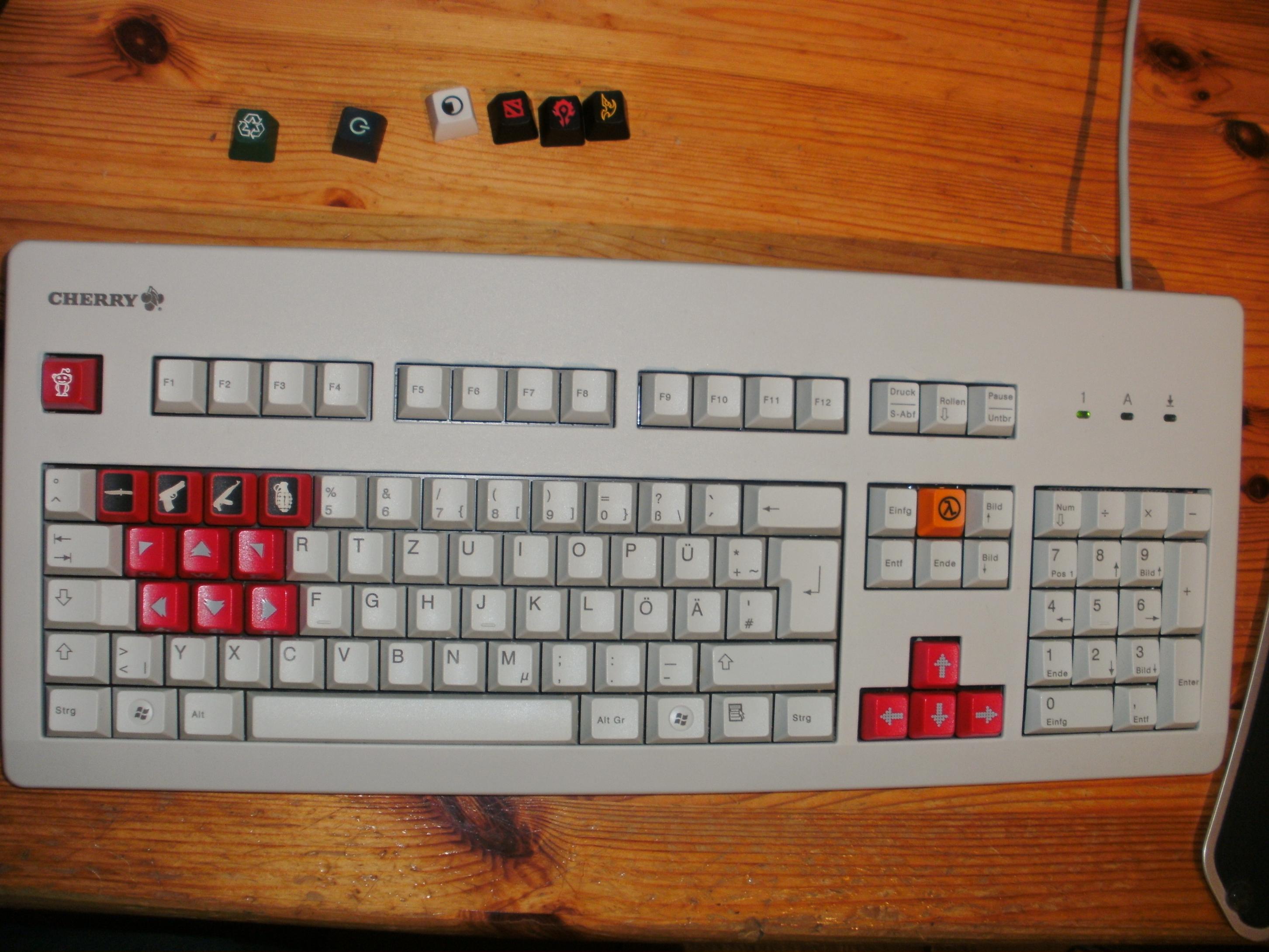 Rot/Weiß sieht noch sieht recht aufgeräumt aus, könnte man auch gleich "Coutnerstrike look" nenne, sähe auf einer sonst schwarzen Tastsa sicher auch interessant aus.