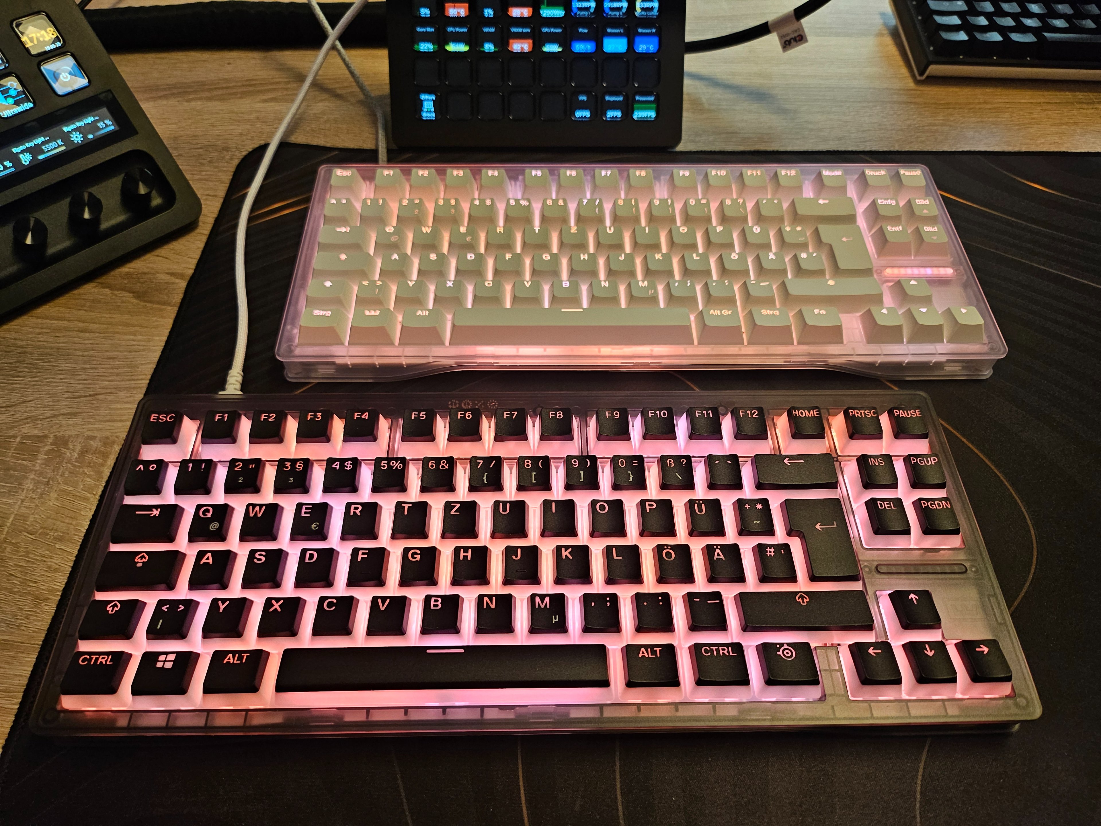 Die weisse mit "Lekker 60" Switches, und die schwarze mit den neuen "Wooting TTC KOM RGB" switches