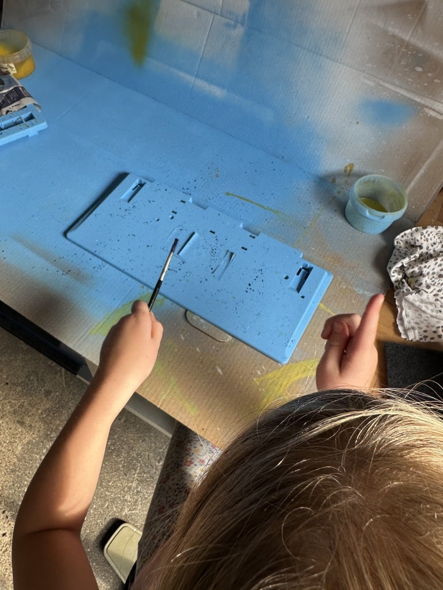 Ich mag ja Fargo wirklich gern. Von daher war das Lester Set von @WhackyChris ein ziemlicher No-Brainer für mich. Allerdings hatte ich kein Board auf dem es mir richtig gut gefiel. Ich habe dann Chris nach den Farben seines Sets gefragt und sie mittels eines Onlinetools in RAL umgerechnet. Anschließend habe ich mir entsprechende Farben in Sprühdosen bestellt. Bei zwei von drei Farben passt es auch sehr gut.