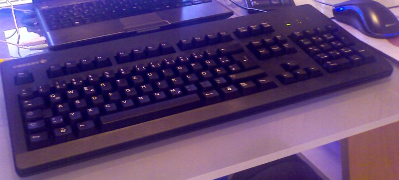 Inzwischen liegen Tastatur sowie Maus auf dem Tisch (endlich kann ich wieder die hanballenauflage anlegen x