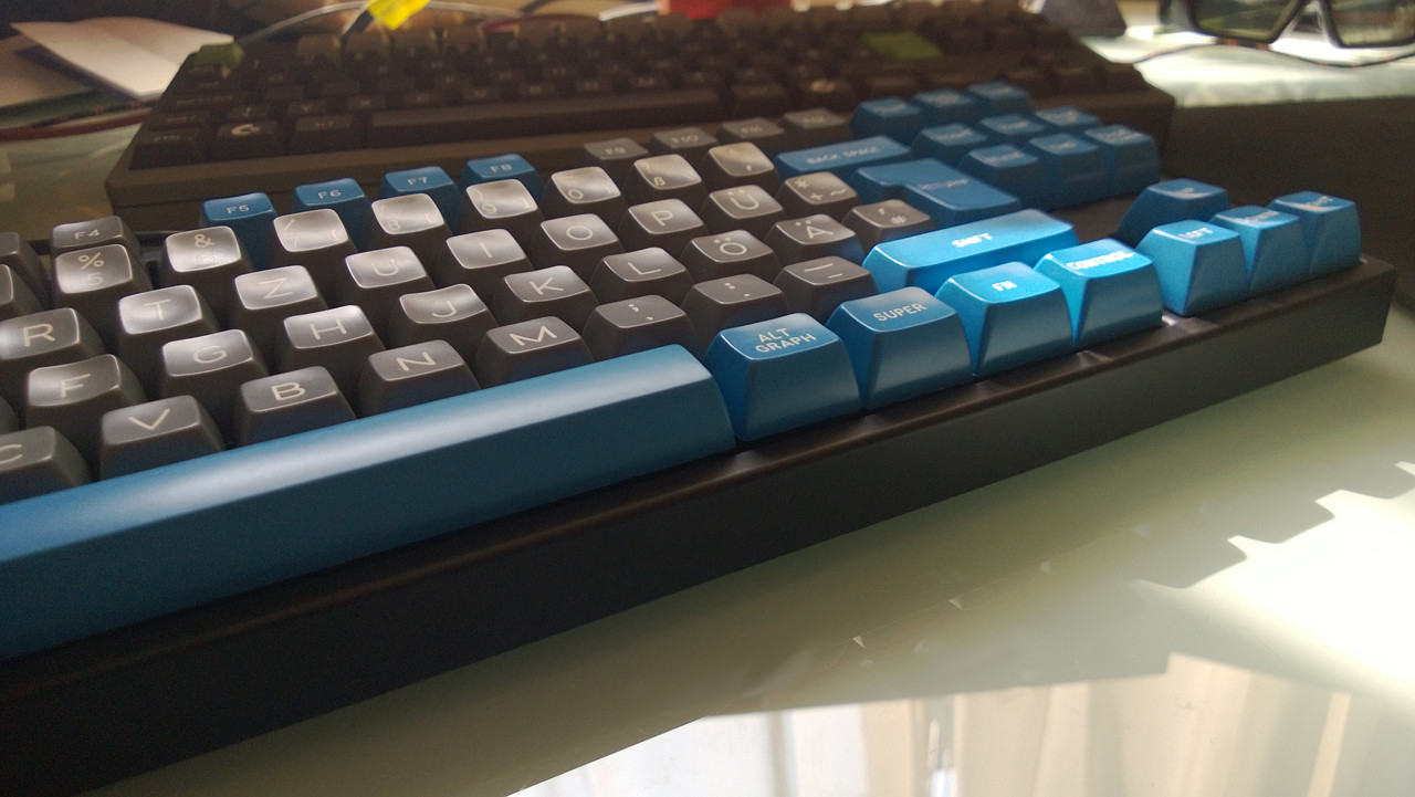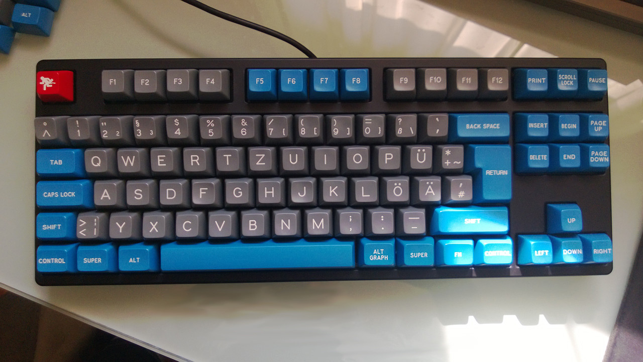 Ich hab' anschließend noch andersfarbige Esc-Caps ausprobiert aber selbst das war mir schon too much. Mehr als zwei Kappenfarben sagen mir irgendwie nicht zu.
