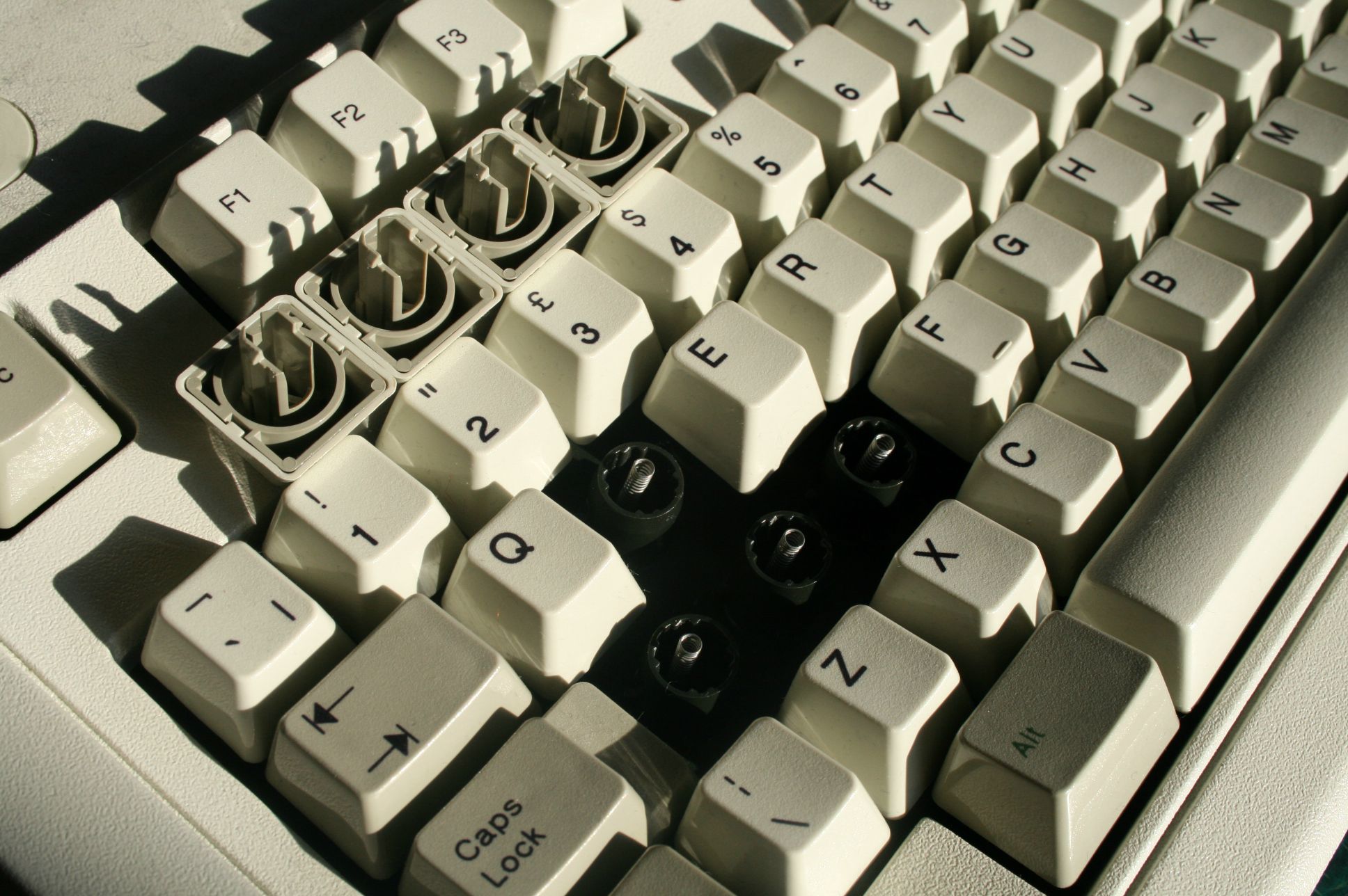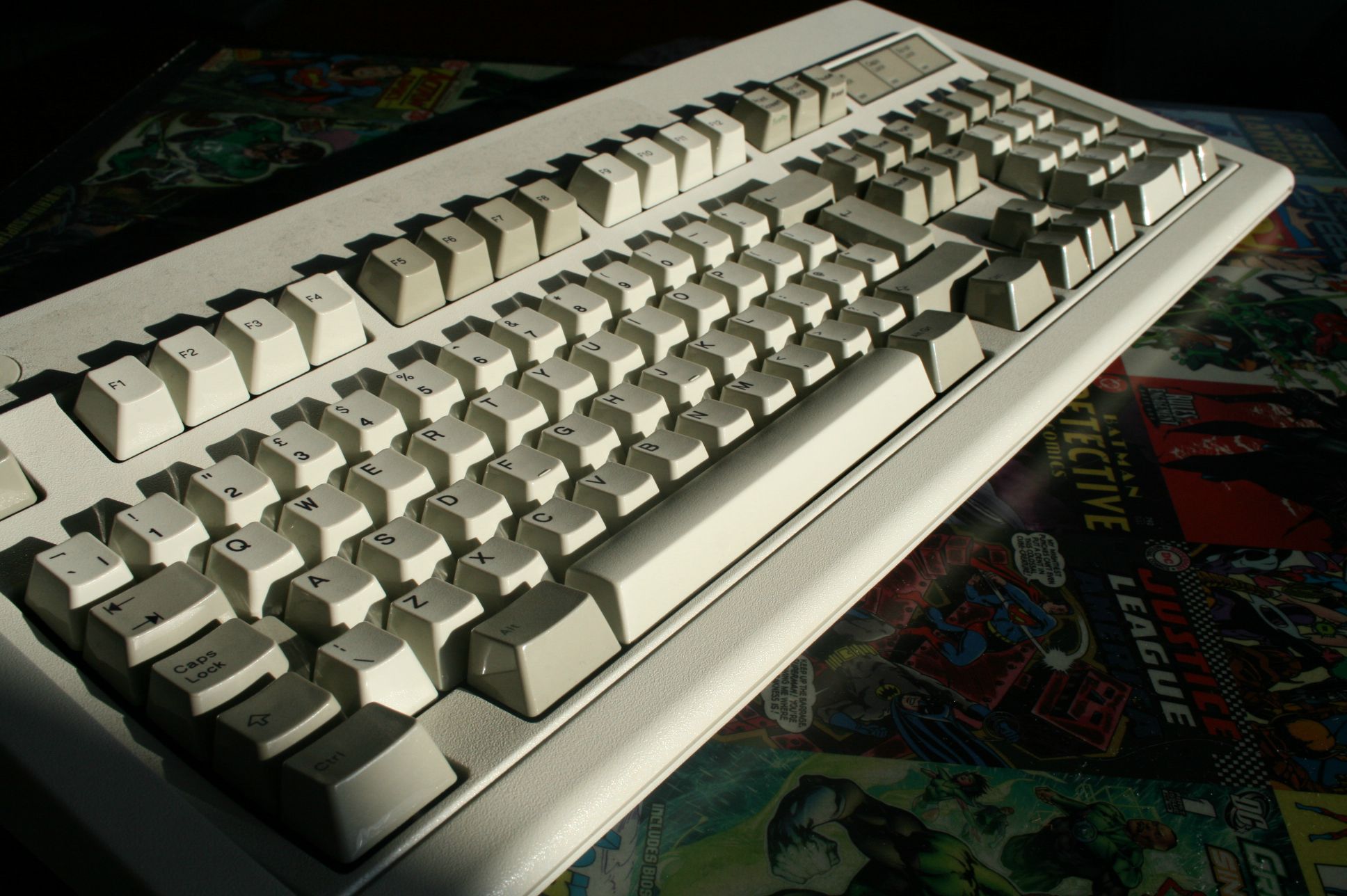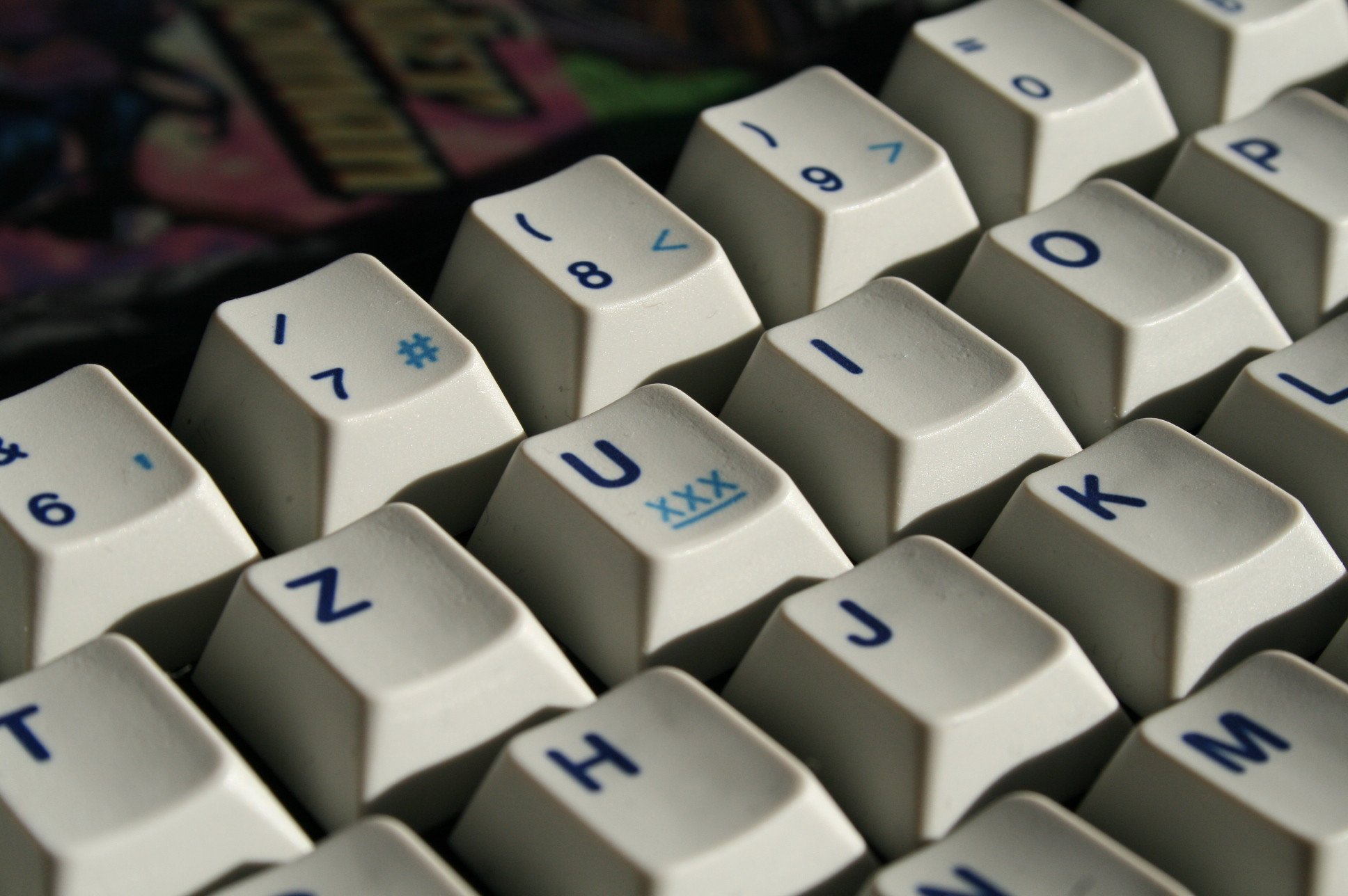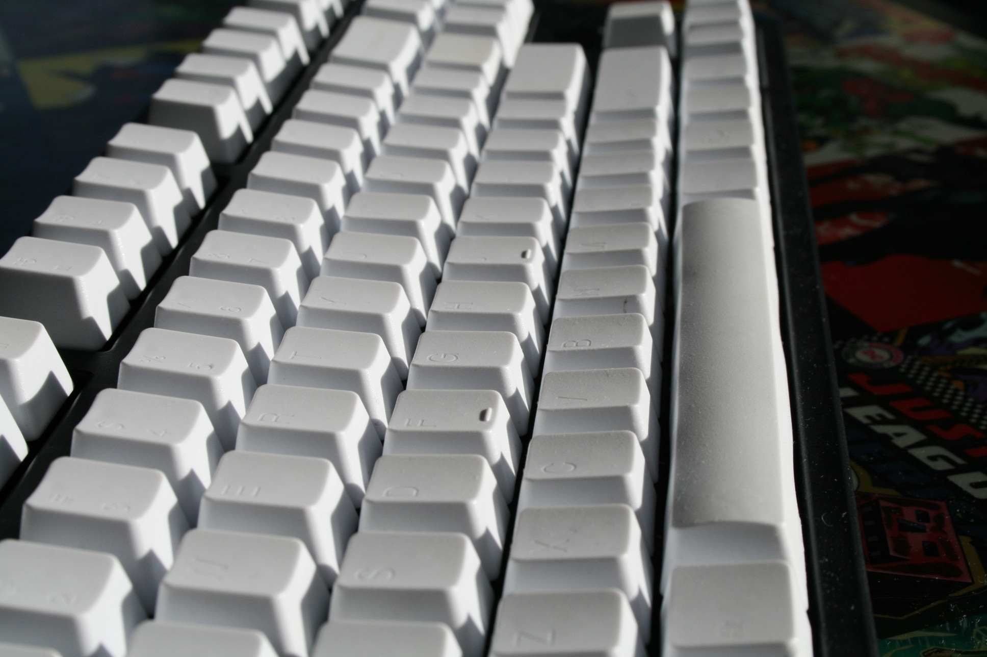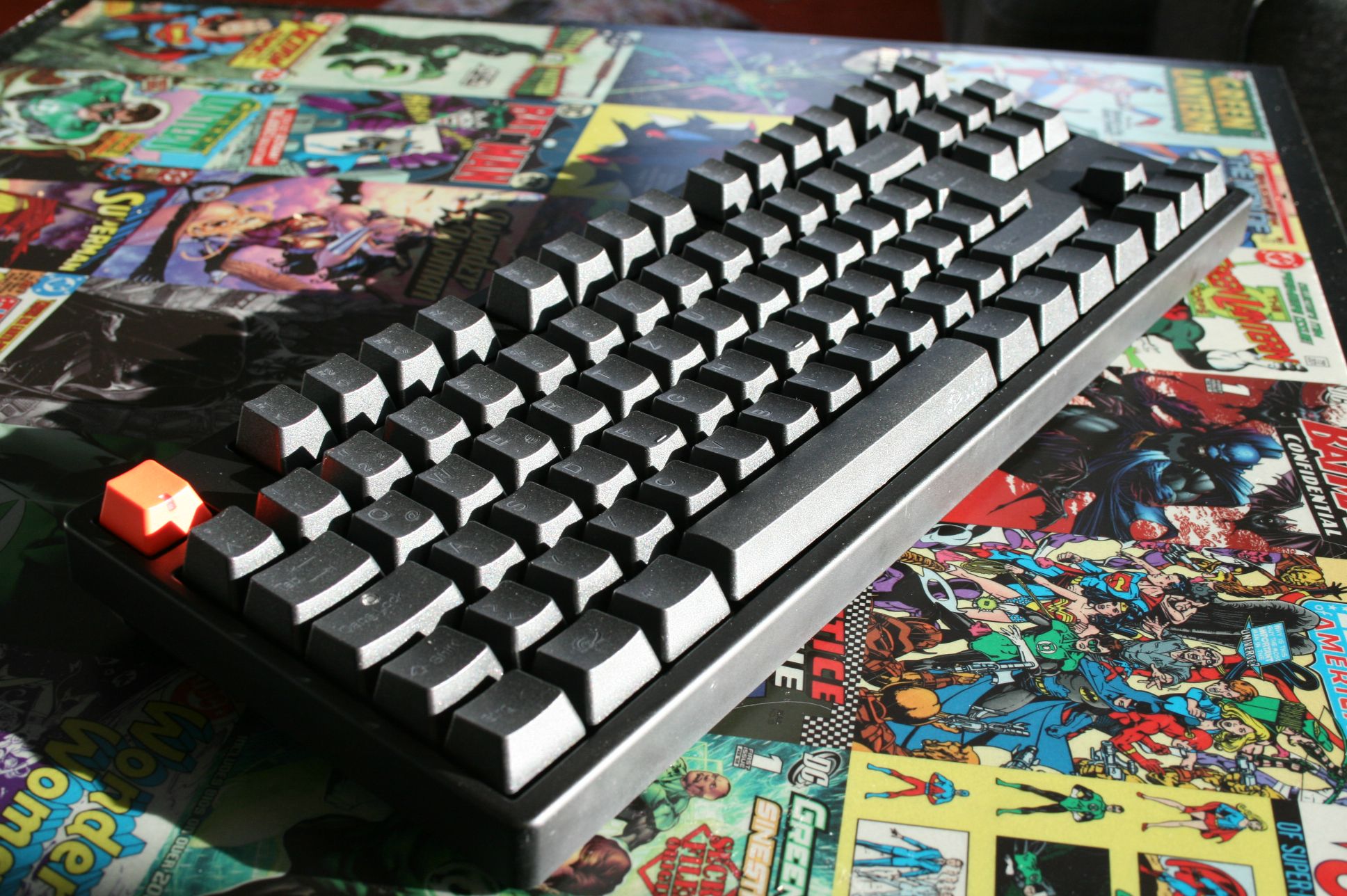 Die hab ich von einer altern Triumph-Adler Schreibmaschine. Daher passen auch im Prinzip nur die Buchstaben/Zahlen richtig, weil so eine Schreibmaschine eben ein komisches Layout hat. Ansonsten kriegst du mit etwas Glück dicke Dyesub PBTs von einer alten Cherry G80 oder G81.
