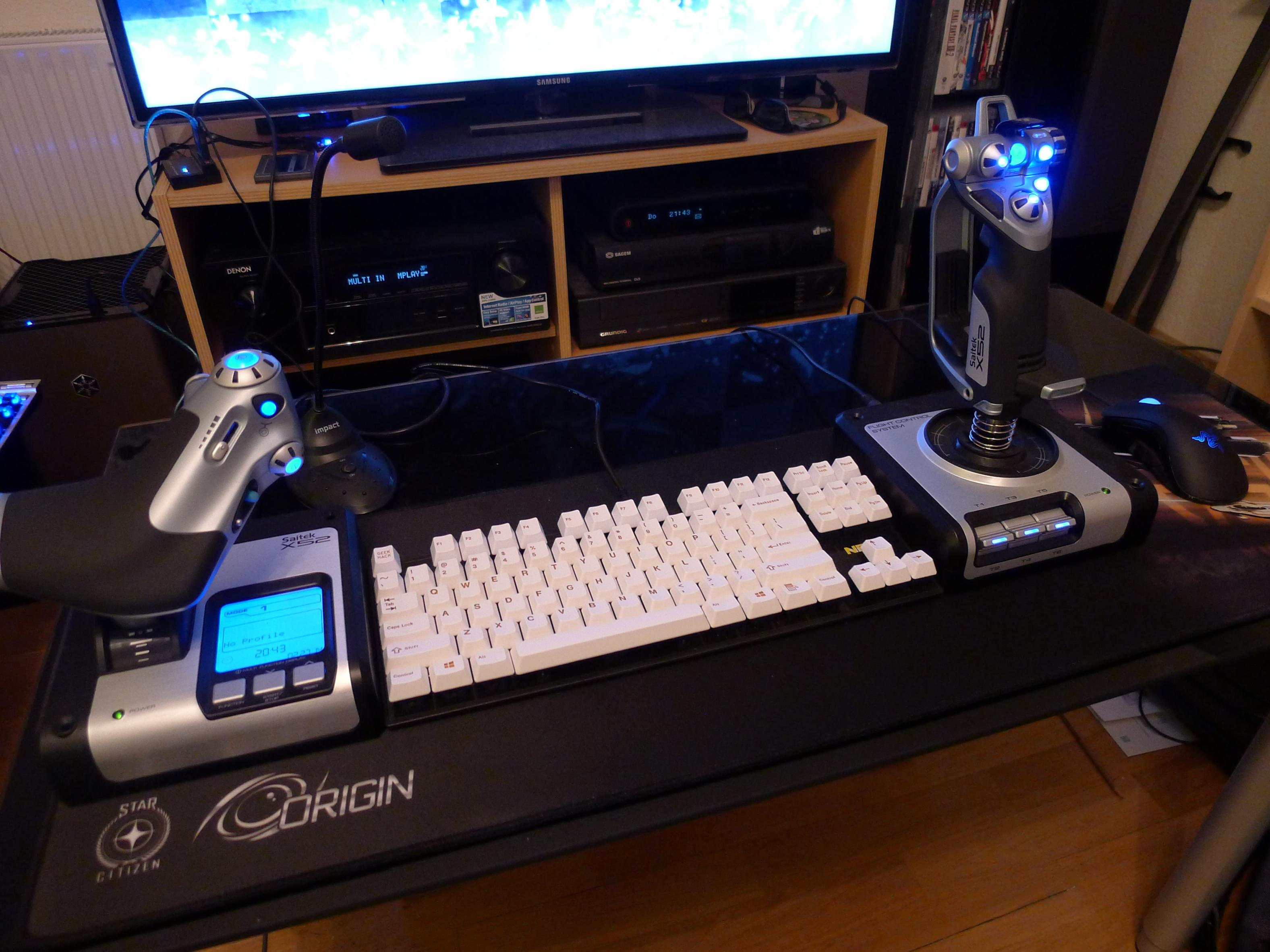 Was den Joystick angeht: wollt mal ausprobieren wie gut das als Cockpit für Star Citizen funktioniert ;-) Muss sagen der Platz auf dem Mega-Mauspad reicht exakt und ist eigentlich ganz gut bedienbar.
