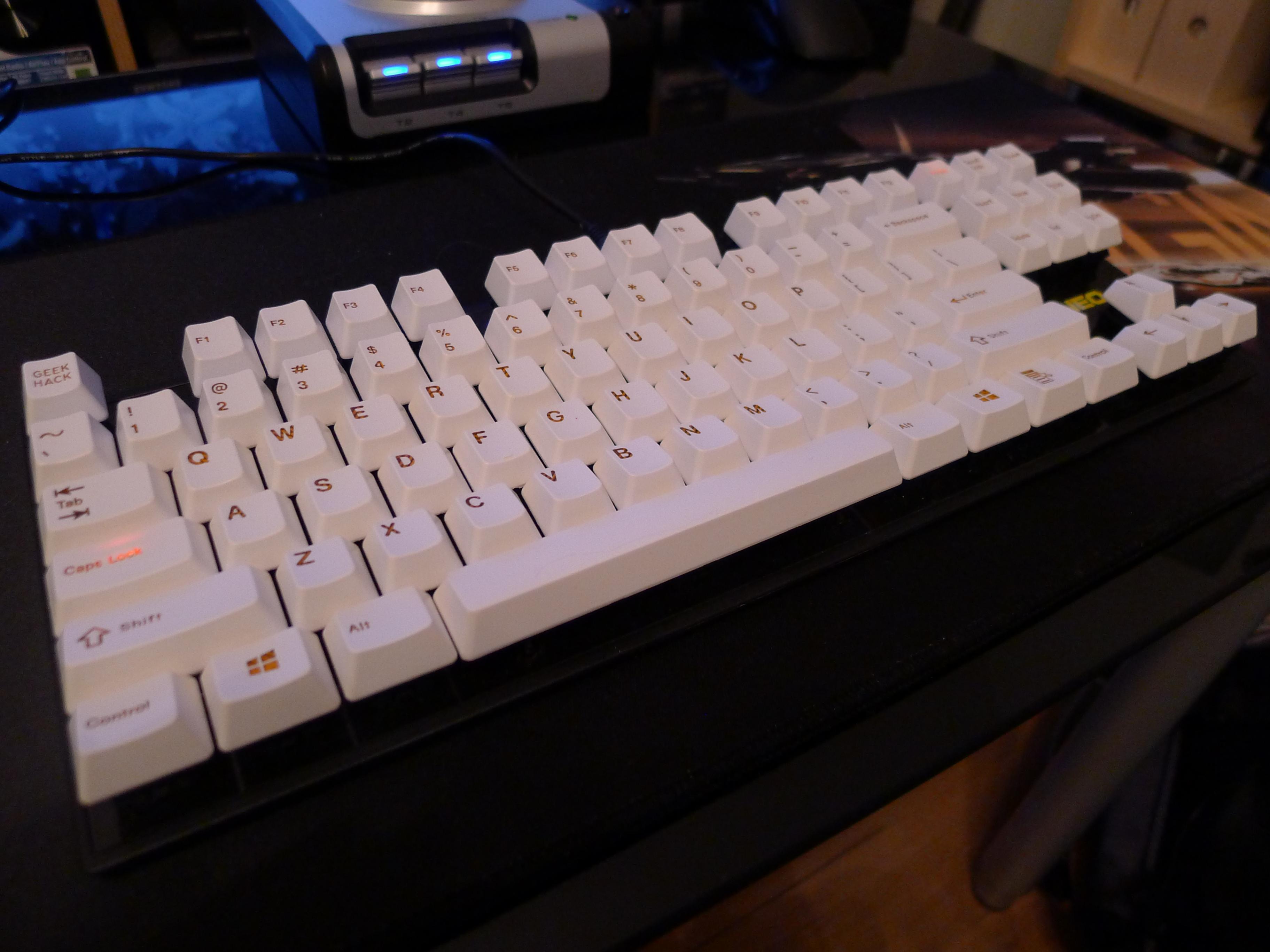 @HongKong Fui: ja die Tastenkappen von SP sind recht dünn, deshalb schwärmen mittlerweile alle ja so von GMK. Ich find aber vor allem die weißen Tasten mit der orange transparenten Schrift auf dem Set einfach geil ;-) schade das aus den transparenten Modifiern nichts geworden ist... aber das Mesh sah bei manchen schon recht obskur aus.