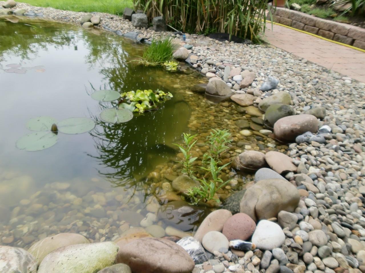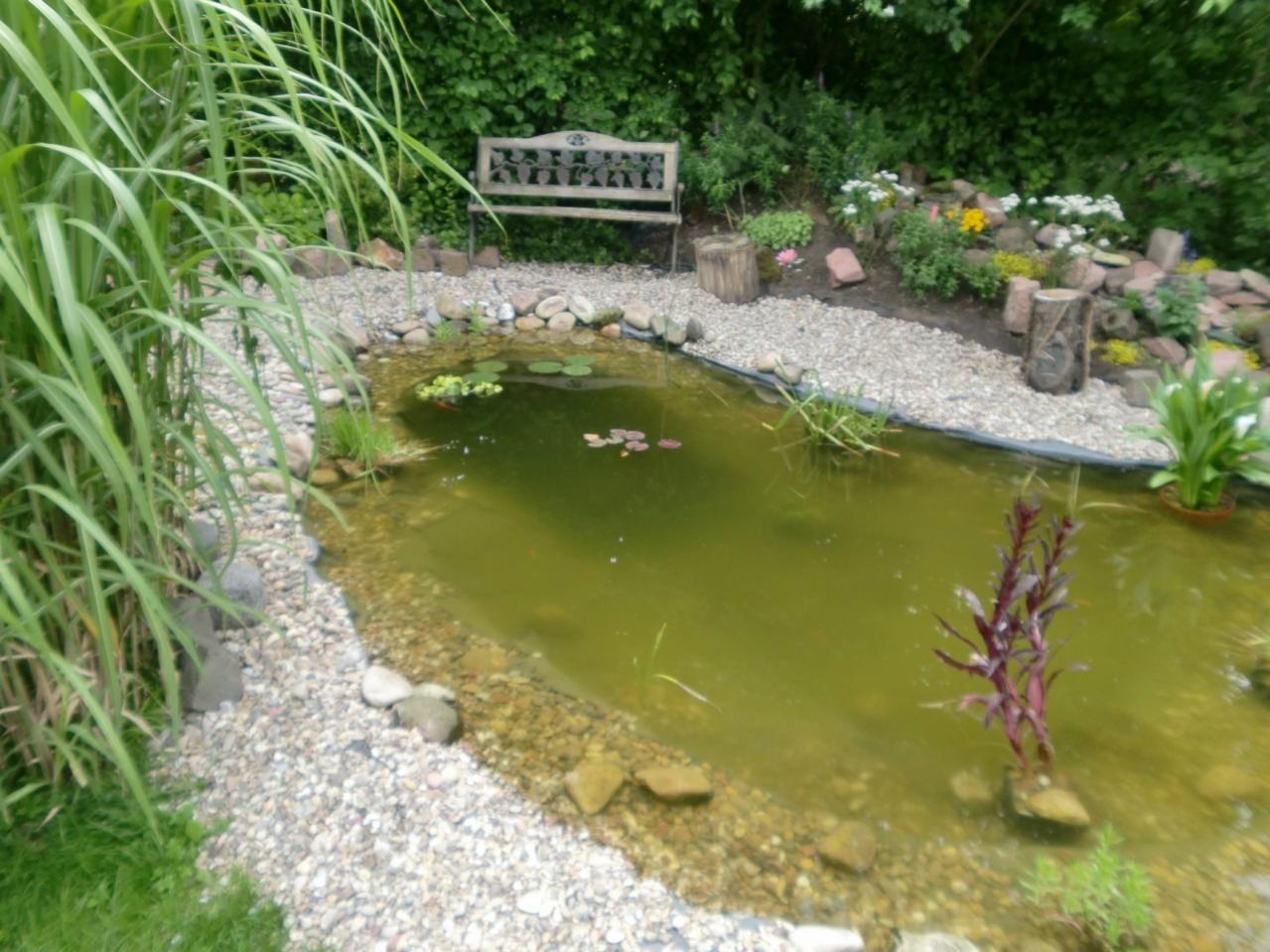 Der Teich wird mit Regenwasser vom Dach gespeist.