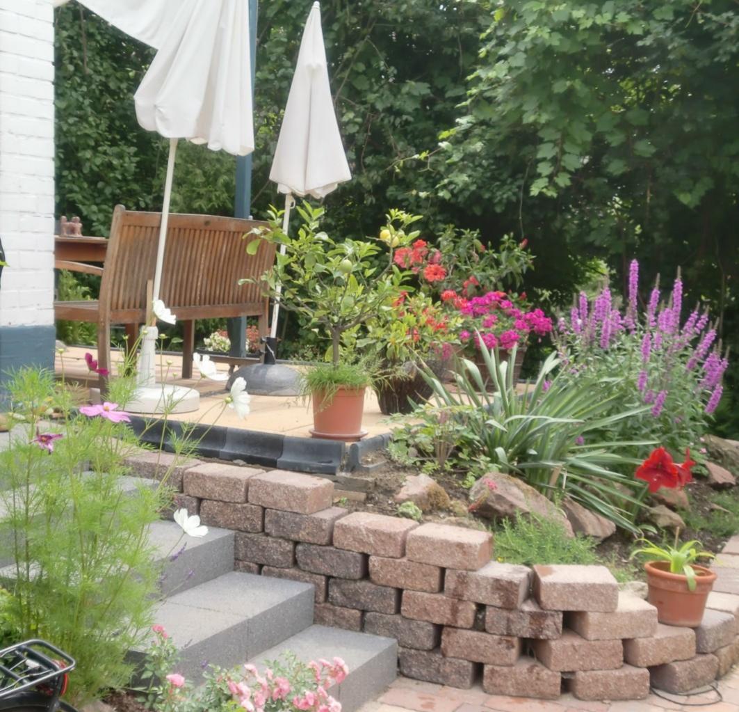Da mir der Garten sehr gut gefällt und ich unbedingt mehr davon sehen möchte, hier mal ein paar Bilder von einem Garten der zwar nicht mir gehört, in dem ich aber sogar die Eidechsen namentlich kenne. Jeder Fleck darin birgt schöne und Arbeitserinnerungen. :p