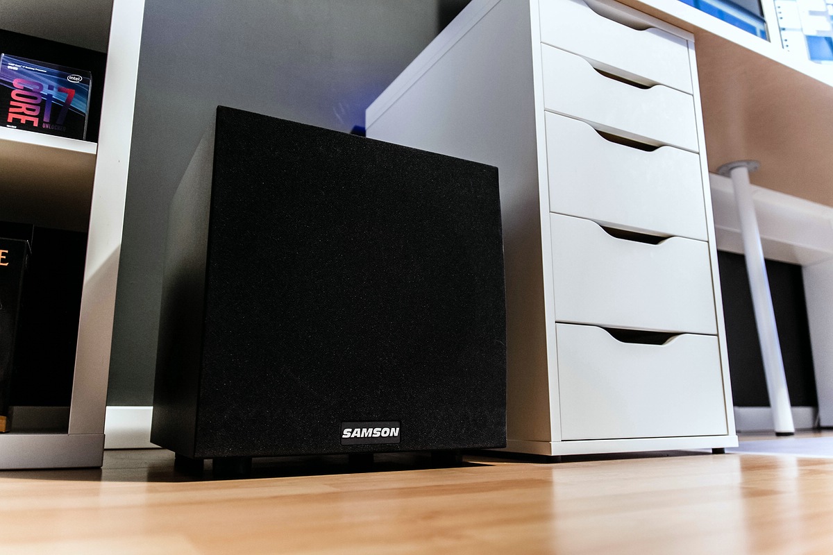 Unter dem Schreibtisch steht noch ein Elac 2090 Subwoofer. Der 8020 Center wird bald ersetzt durch einen weiteren 8040.