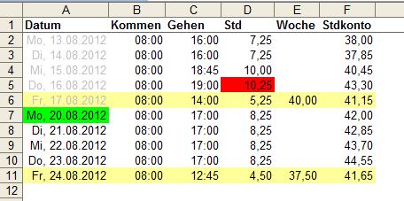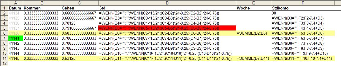 2. Wenn in Spalte A ein Samstag steht, soll in Spalte F in der selben Zeile die Summe der Differenz (Montag-Freitag) ausgerechnet werden.
