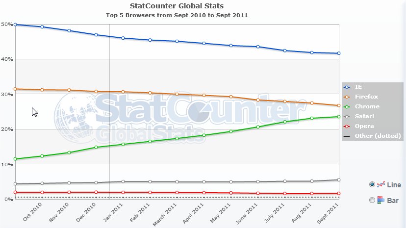 Führt aber wie gesagt nicht zu dem selben Ergebnis wie die ComputerBase-Grafik, darum würd ich dir empfehlen, einfach die Daten zu den Browsern aus Besucher>Browserfunktionen>Browser herauszukopieren und den Graphen dann mit zB Excel zu erstellen, wo du gleich um einiges mehr Funktionen und Möglichkeiten hast.