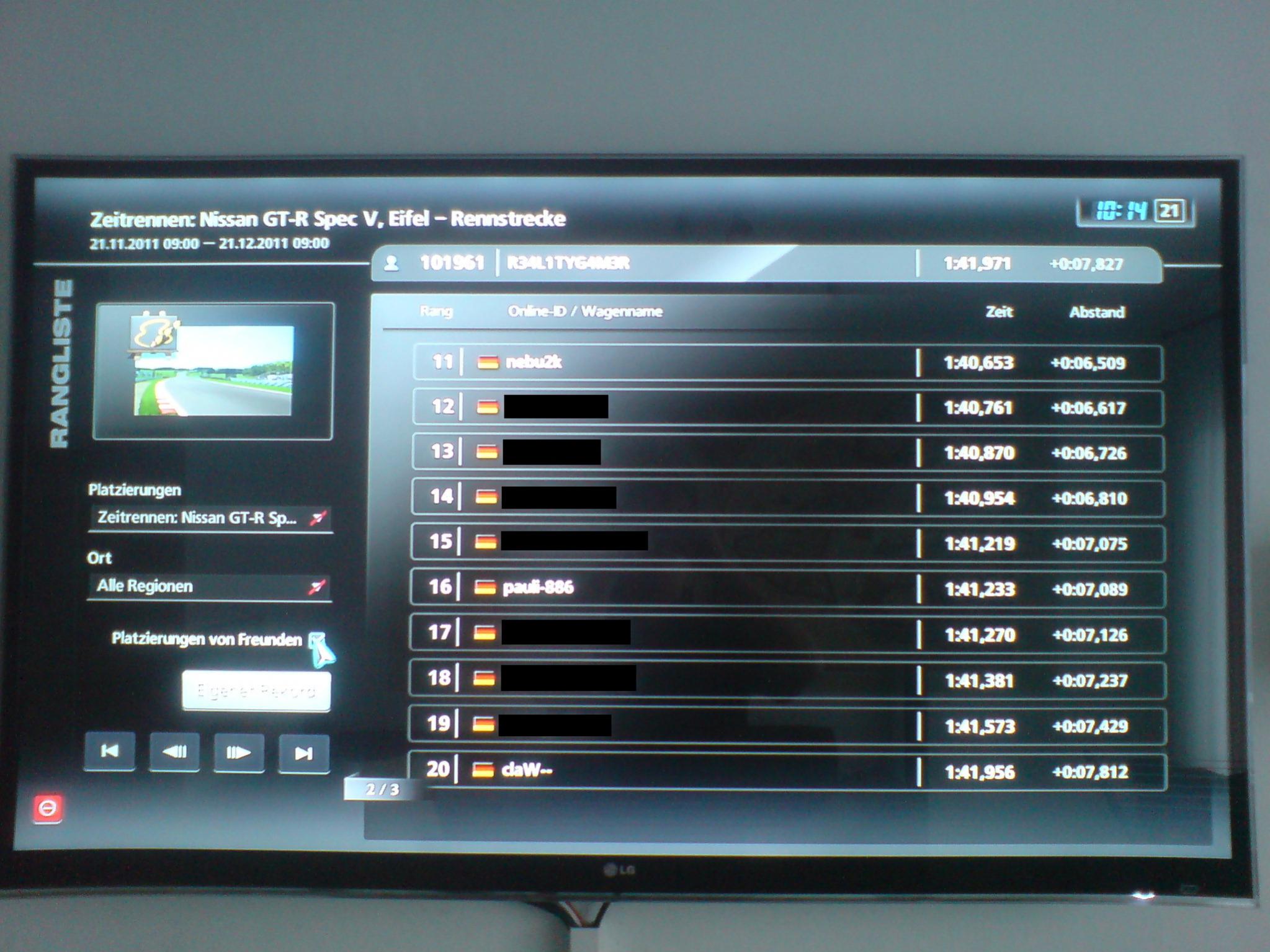 Platz 1: Chicken-73 mit 1:34,144 (1. Foto im Anhang Spieler Chicken-73) / Preis versendet Platz 2: Loriot76 mit 1:36,147 (1. Foto im Anhang Spieler Chrischi576) Platz 3: R!GG$ mit 1:37,041 (1. Foto im Anhang Spieler riggs138) Letzter Platz: Elektroboyz mit 1:47,000 (1. und 5. Foto im Anhang Spieler Elektroboyz)