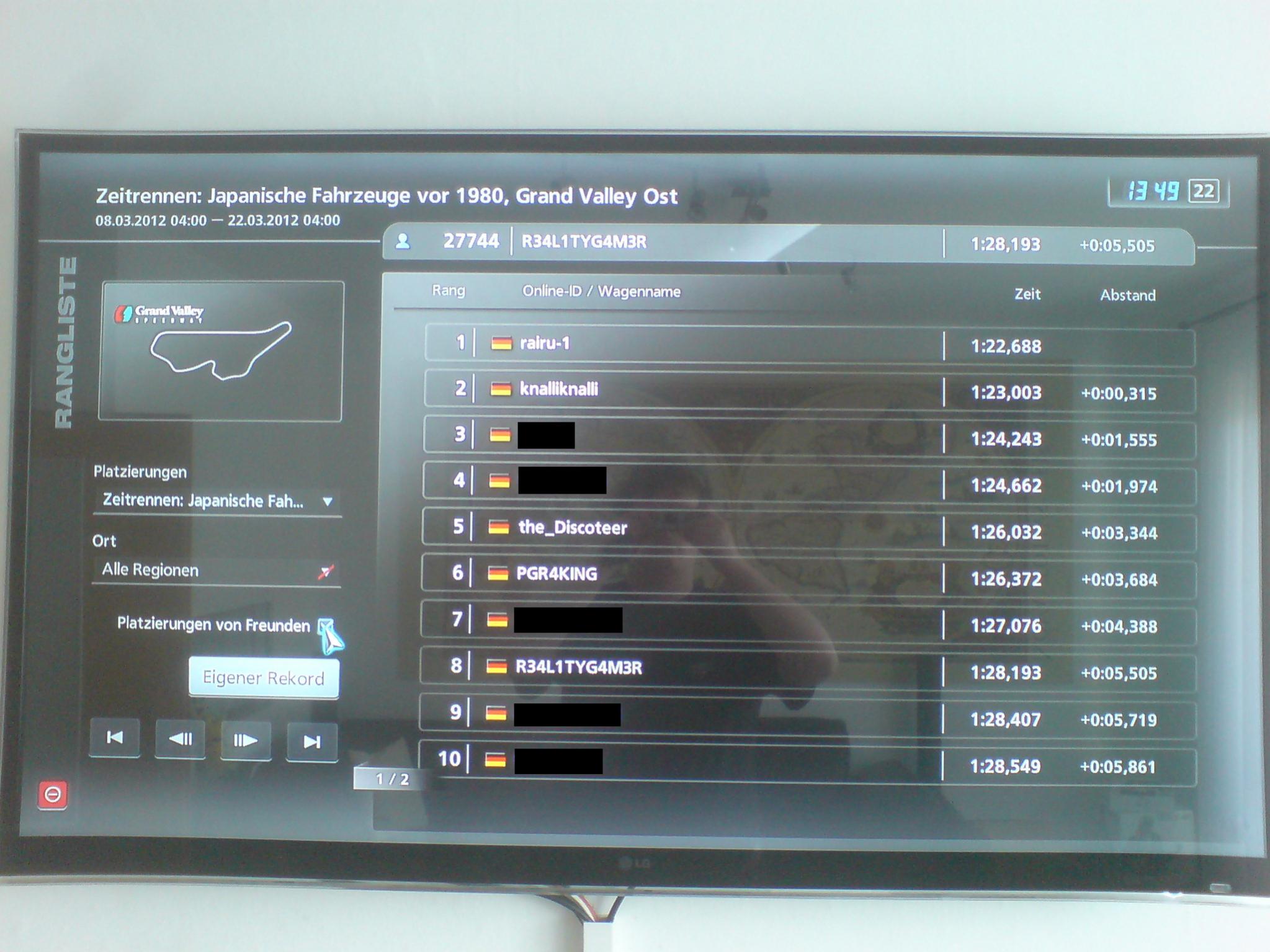 Platz 1: rairu mit 1:22,688 (1. Foto im Anhang Spieler rairu-1) / Preis versendet