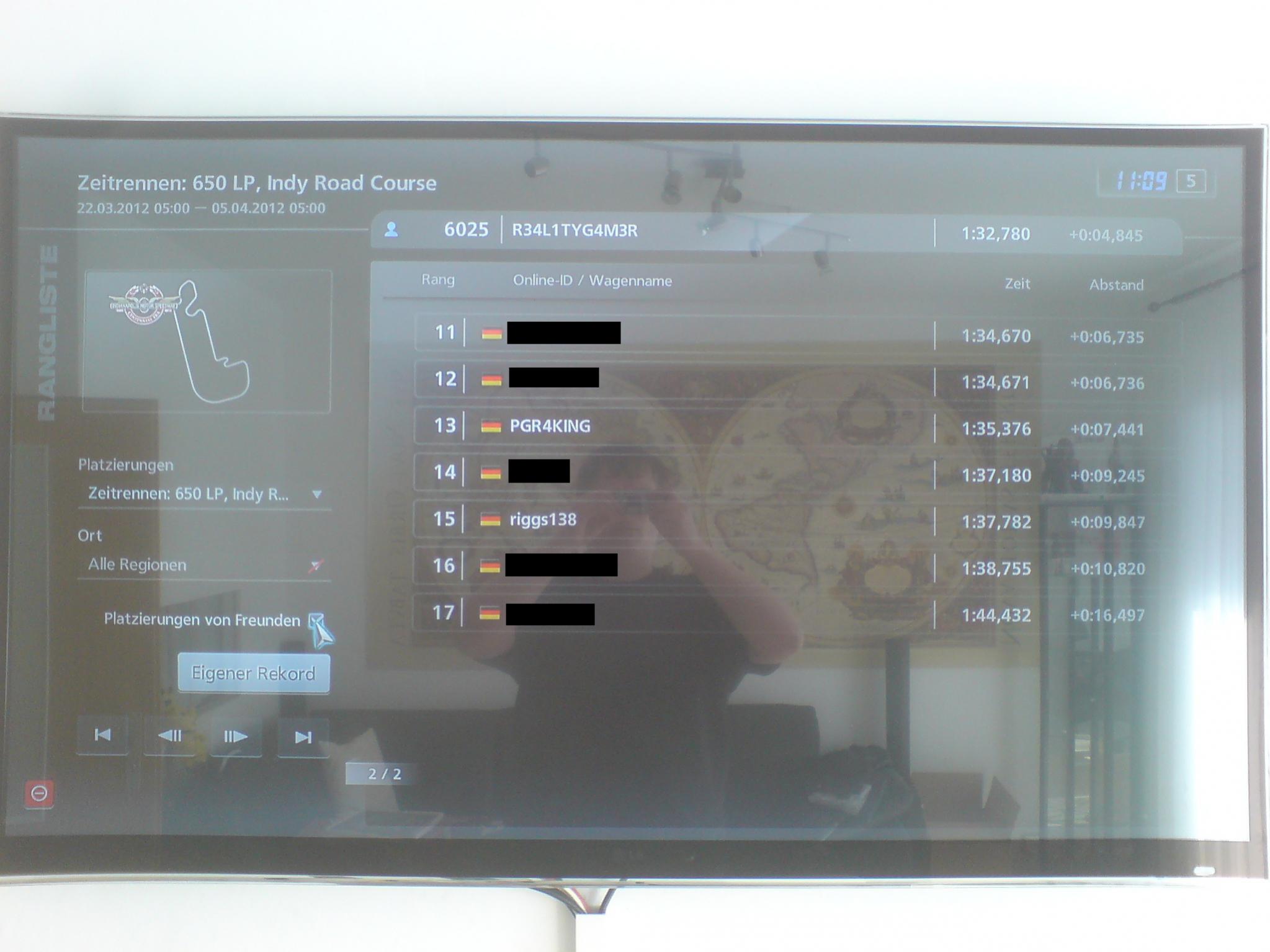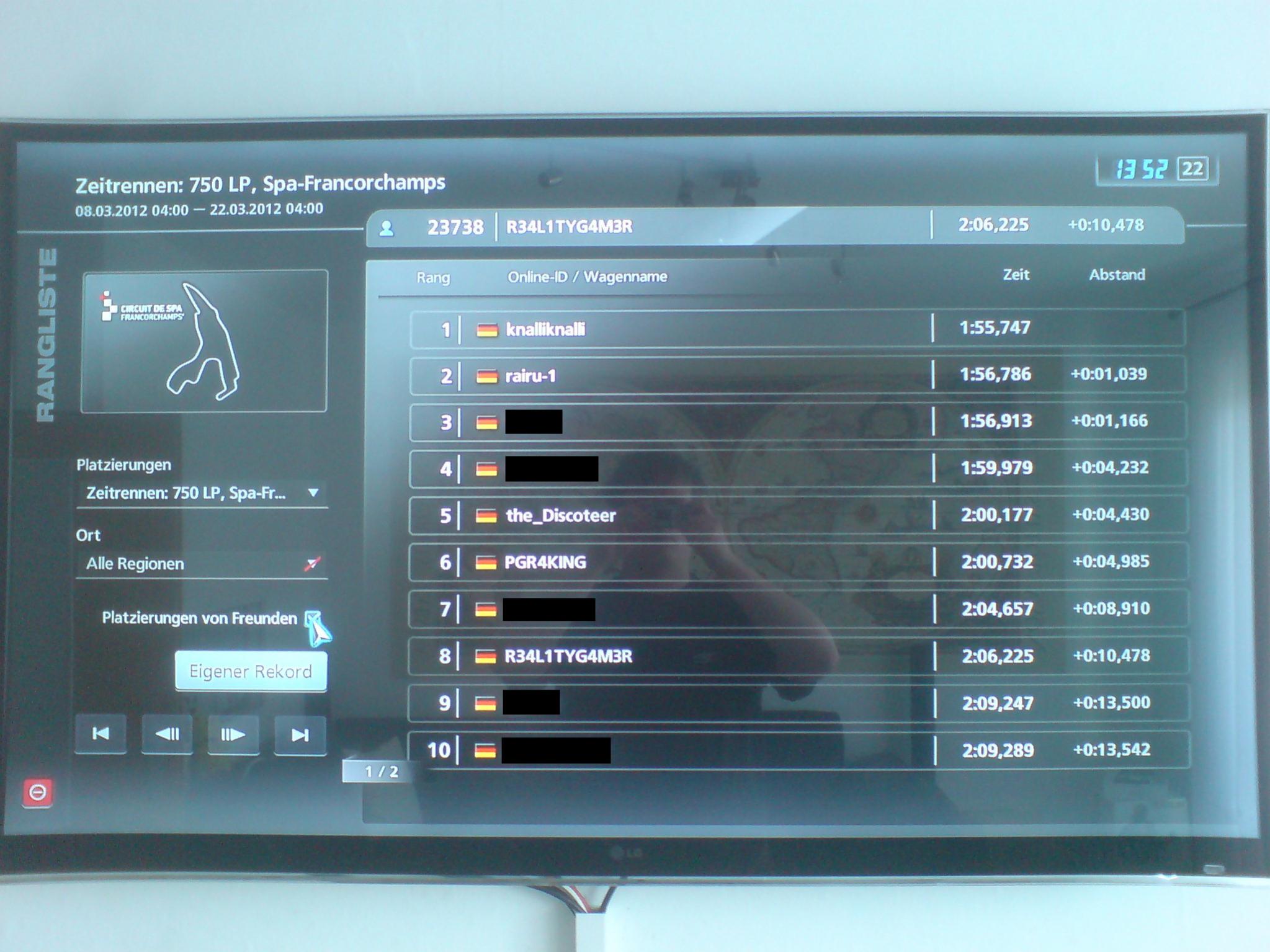 Letzter Platz: BlackCore900 mit 2:00:732 (2. Foto im Anhang Spieler PGR4KING) / Preis versendet