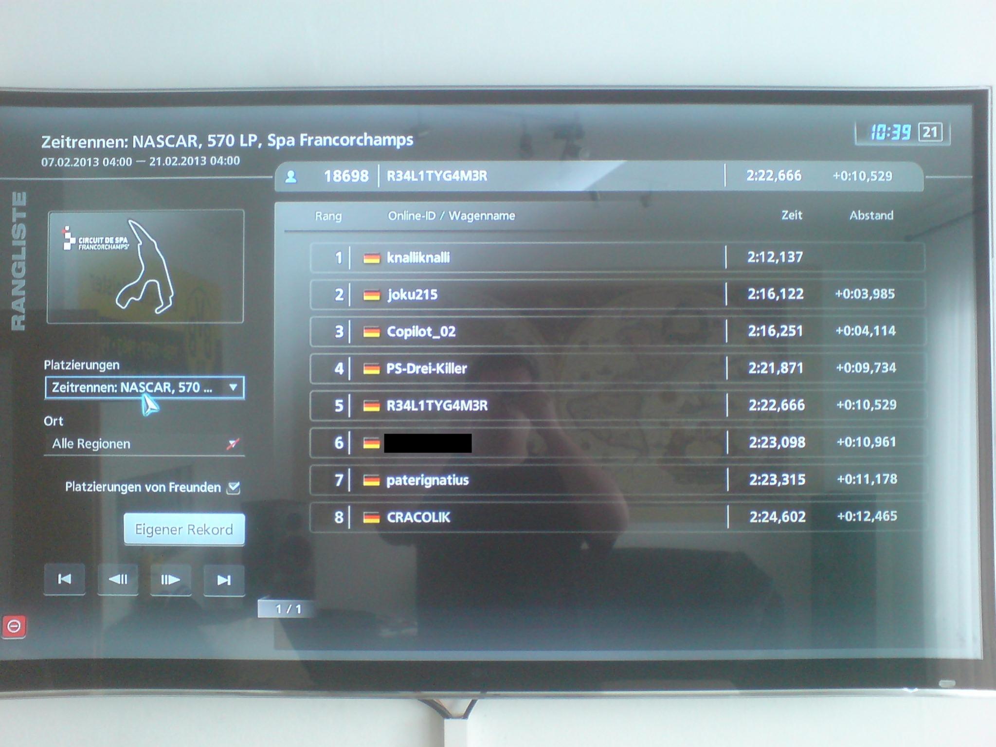 Platz 1: knalliknalli mit 2:12,137 (1. Foto im Anhang Spieler knalliknalli)