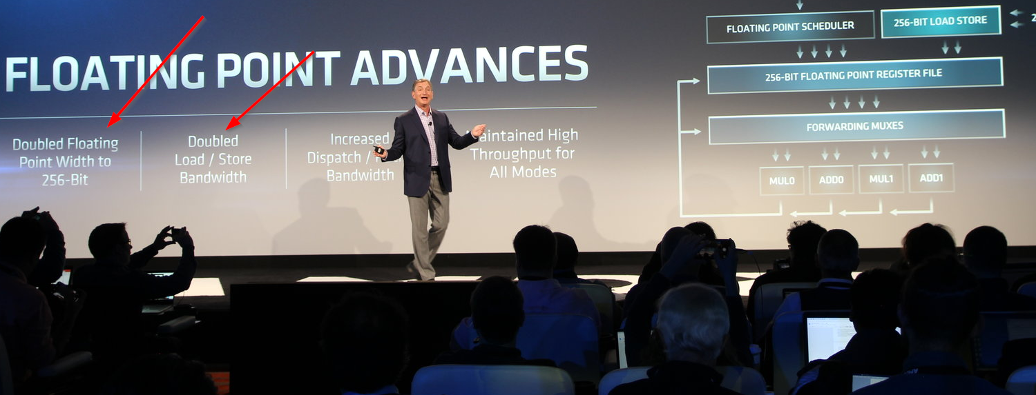 Das finde ich dann doch recht überraschend. Eine Verdoppelung der FP Einheiten ist eine recht gravierende Änderung der Architektur, wo man dann typischer von einem völlig neuen Design sprechen würde. Unter Umständen, also bei float point lastingen Benchmarks, gäbe es dann +100% IPC.