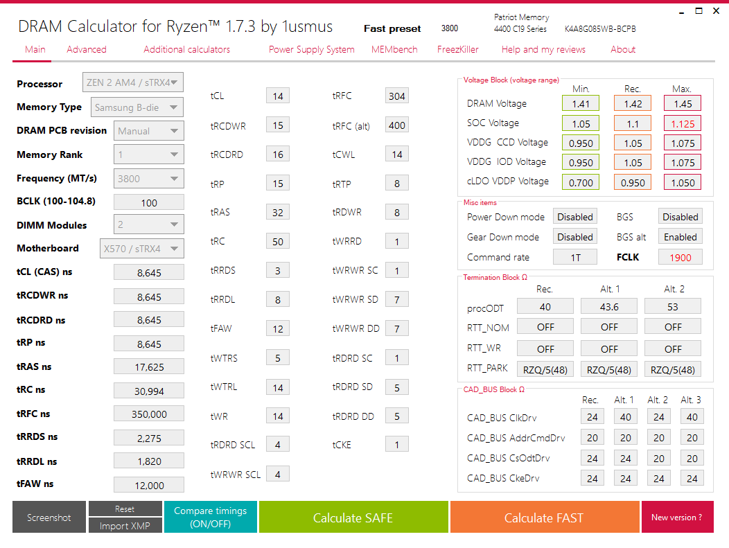 Und bei der Trfc Werten hat sich auch ein Fehler eingeschlichen. Der DRAM Calc spuckt 349 - 259 - 160 aus.