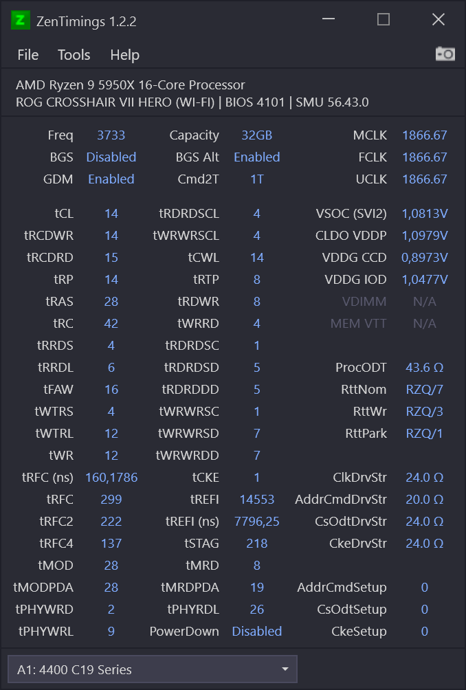 Gleichmal aufs Deskmini geschmissen, damit ich einen Screenshot da habe, falls ich mal meine RAM-Settings wiederherstellen muss. Der Dark-Mode ist eine Wohltat für die Augen. Groß Änderungen sind mir aber nicht aufgefallen. Ich nutze das Tool aber auch sehr selten und habe noch nur Zen+ im Einsatz. Tut was es soll, simpel in der Nutzung...