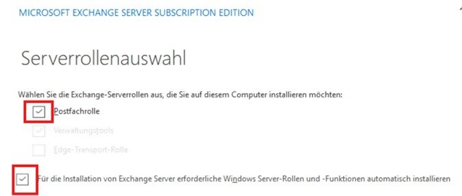 Aktueller Stand: Exchange Installation fertiggestellt auf ersten Exchange SE Server.