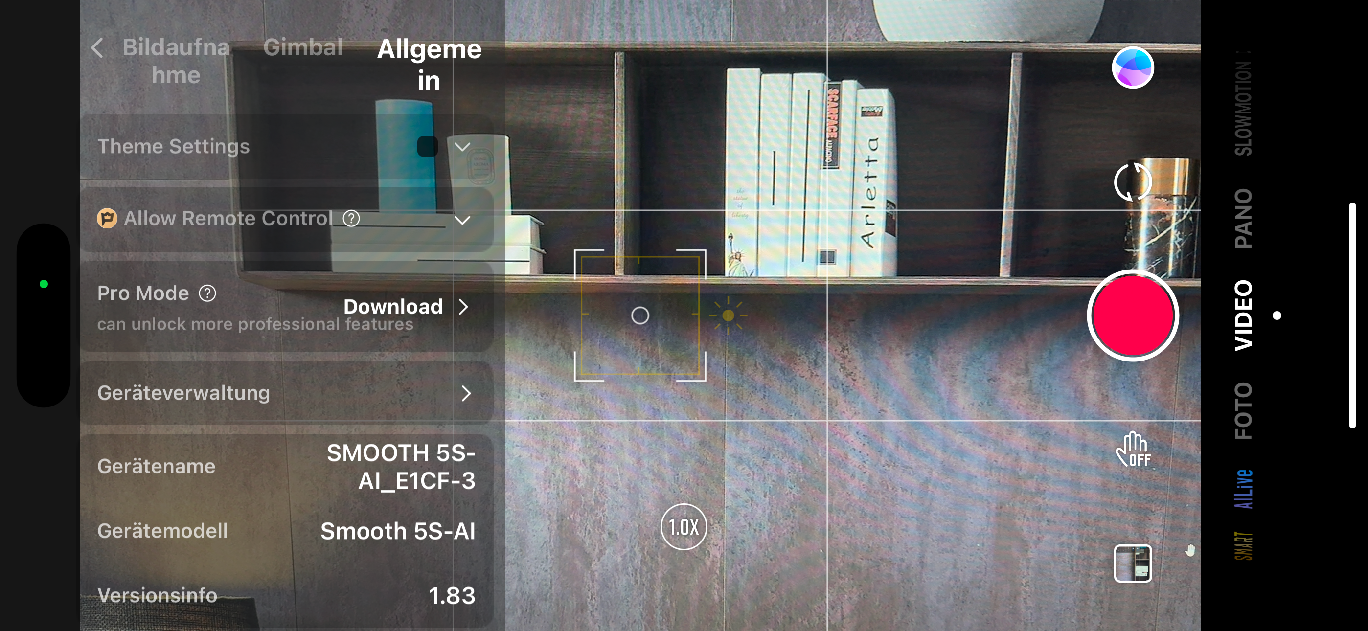 Die App ZY-Cami hinterlässt einen gemischten Eindruck ! Auf der einen Seite haben wir Settings um das Gimbal zu kalibrieren, so wie verschiedene Modi und Trackingmodi zu aktivieren. Ebenso haben wir entweder die Manuelle oder Automatische Kontrolle über die Kamera, also wir können den ISO-Wert ändern, Shutterspeed und Weißabgleich. Ebenso können wir den Autofokus und den Weißabgleich locken. Das sind alles gute Funktionen.
