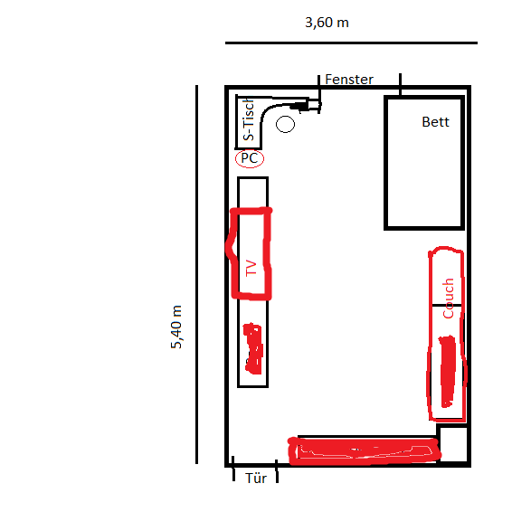 @TE: 5.1 würde nur Sinn machen, wenn dein Schreibtisch neben der Kommode für TV stehen würde. Die Couch dann entsprechend positioniert. Also müsstest du erstmal schauen ob du das platzmässig auch so stellen kannst.