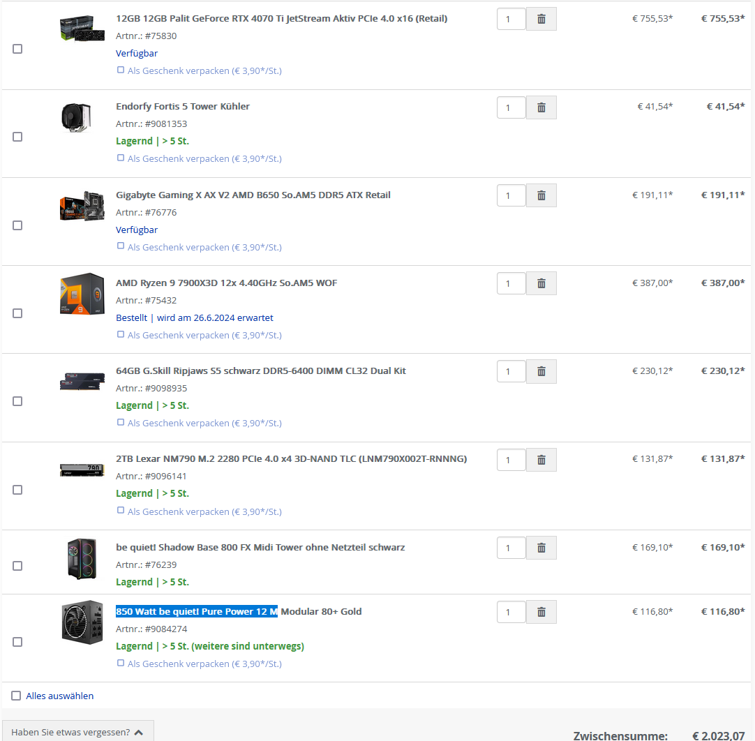 Geizhals sagt 2080€, bei Mindfactory bekomme ich das derzeit für 2023€.