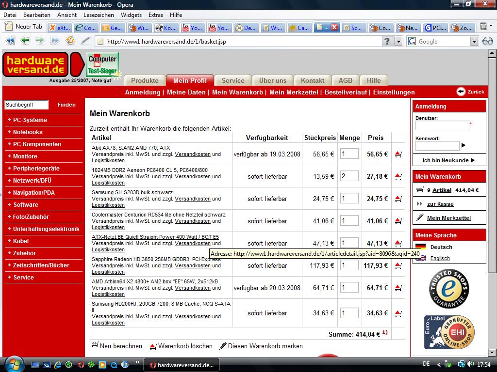 In einem anderen Forum habe ich mir von einem User, der selbst als Computerhändler arbeitet und auch anderen Forumsmitgliedern bereits was zusammen gebaut hat, was anbieten lassen.
