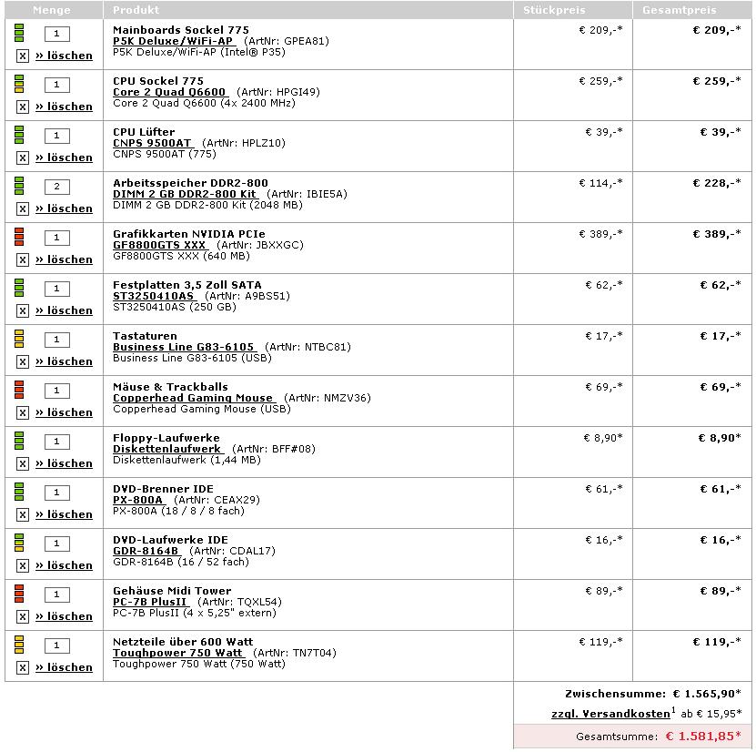 Schau dir außerdem mal eine ähnliche Zusammenstellung bei www.hardwareversand.de an, denke da lassen sich auch noch einige Euro sparen.