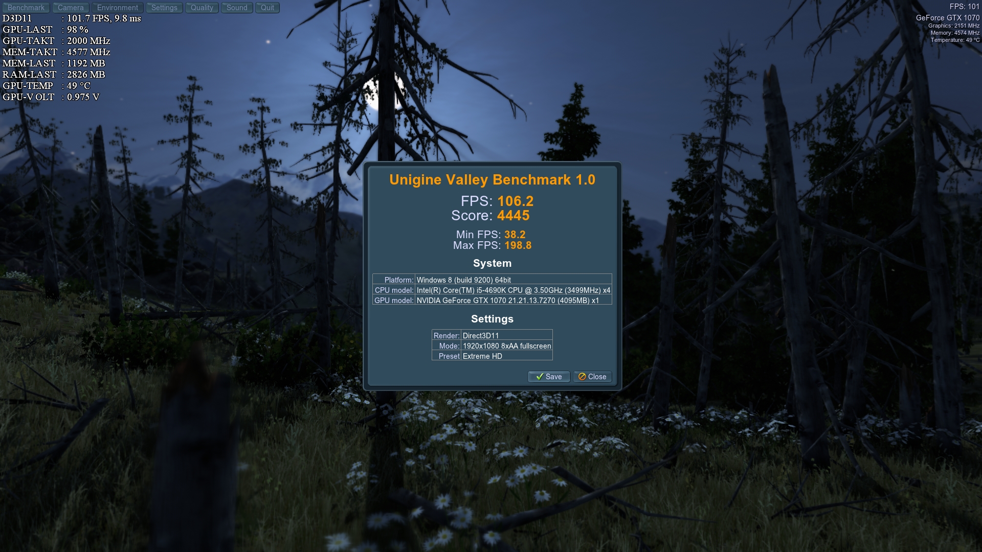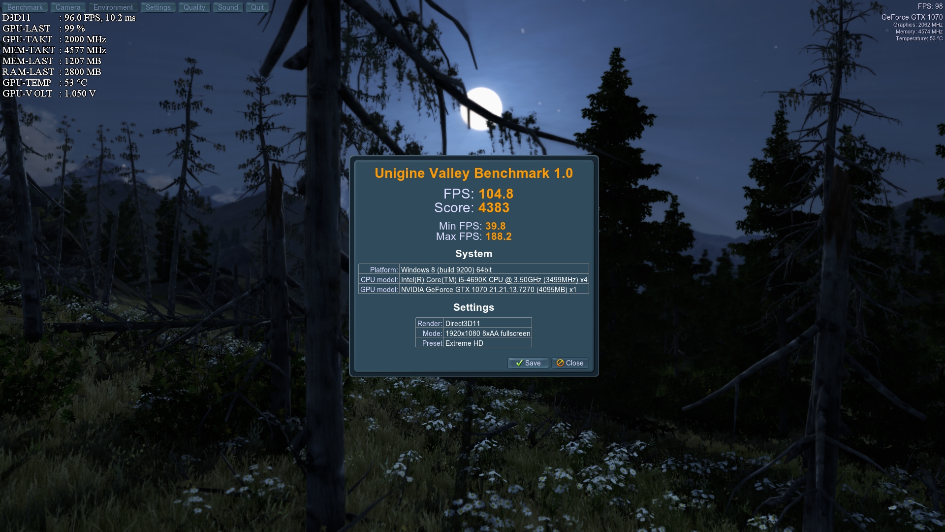 So hab nun mit 0.85 Volt und 1873 Mhz nen Firestorm run gemacht. 10751 Punkte.