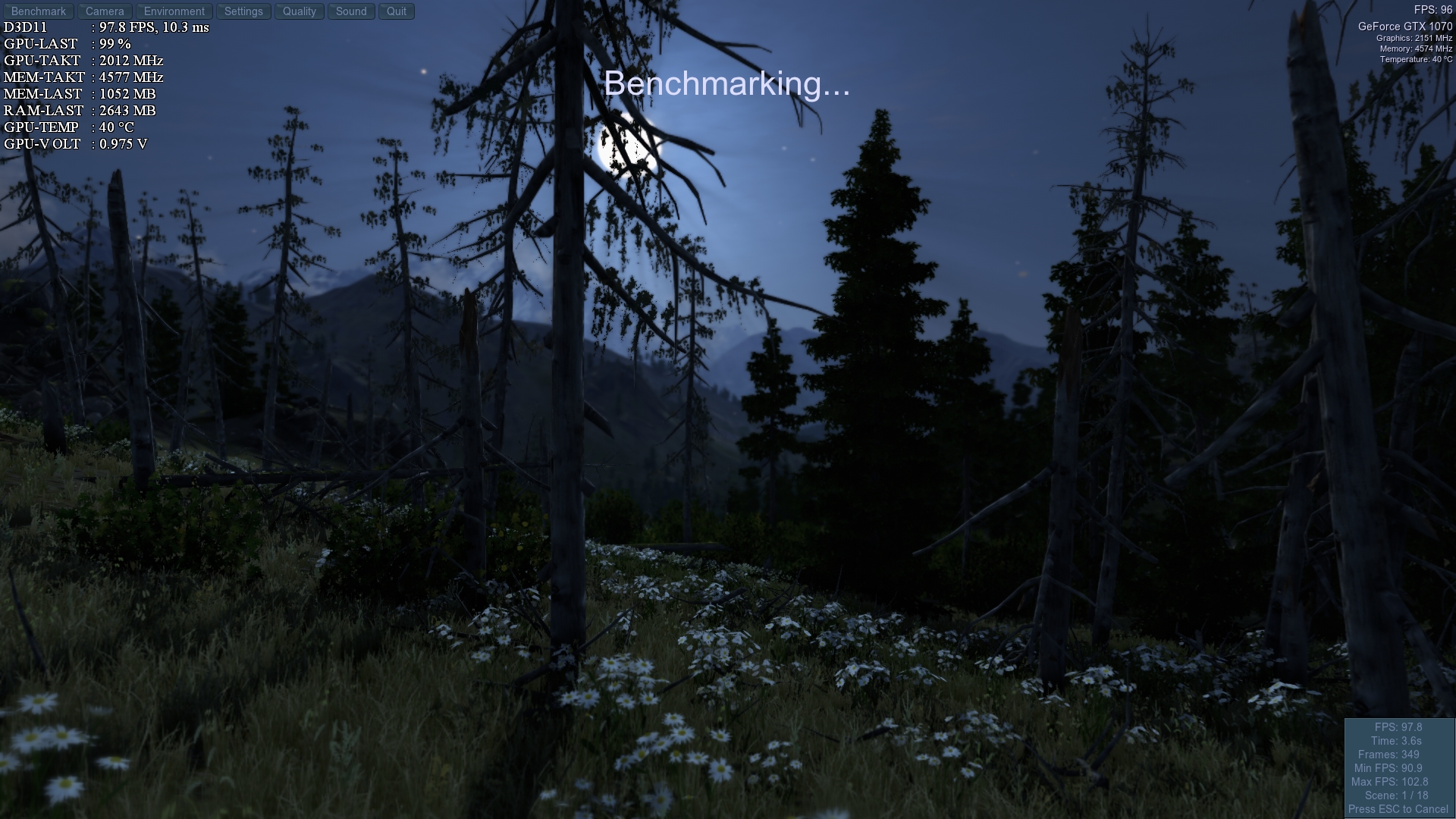 Dann das ganze mit 1.043 Volt. 10850 Punkte.