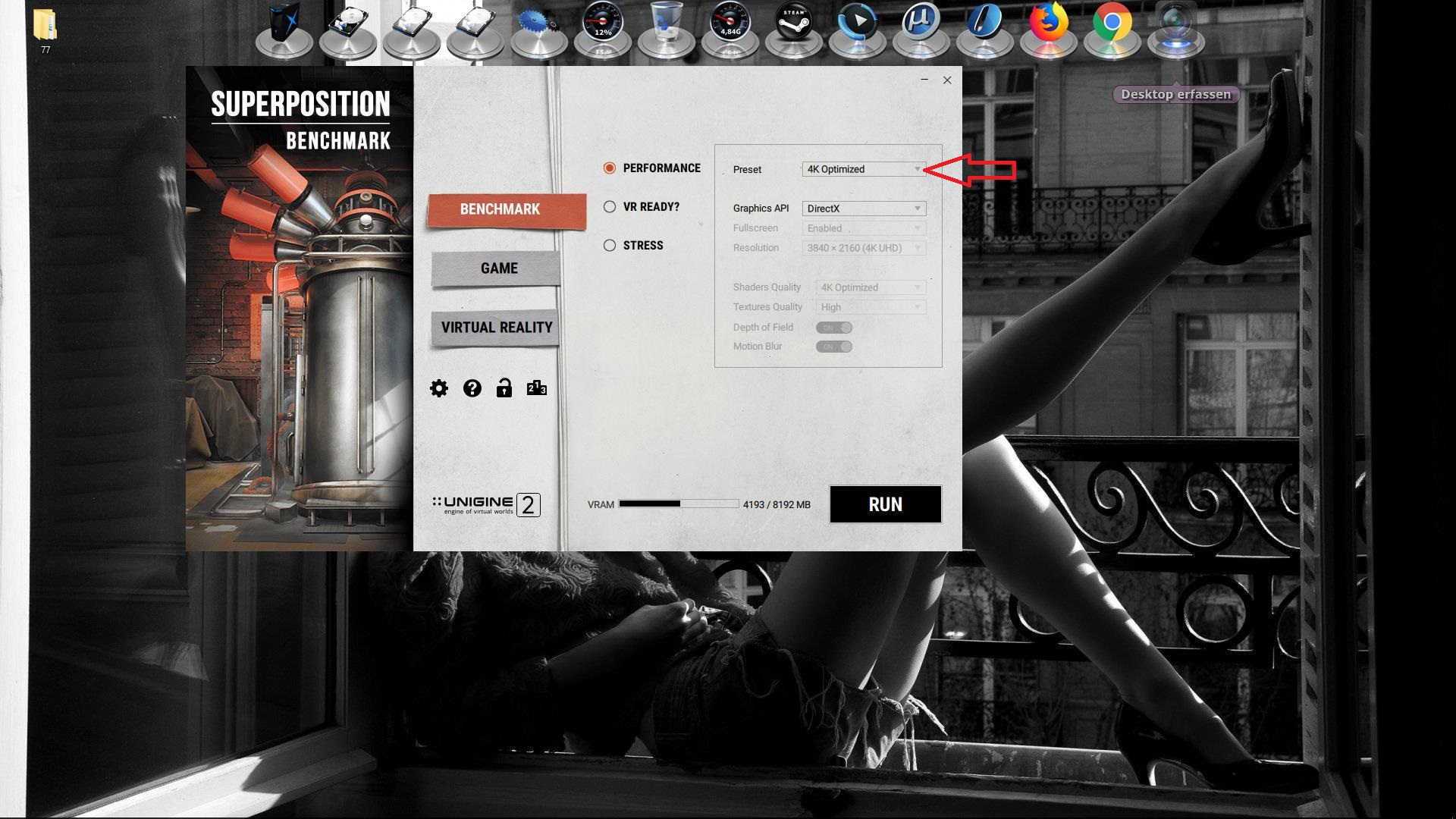 In 4K! Auch immer eine Empfehlung wert ist der MSI Afterburner bzw. dessen OSD mit allen Anzeigen im Bild. Siehe Anhang