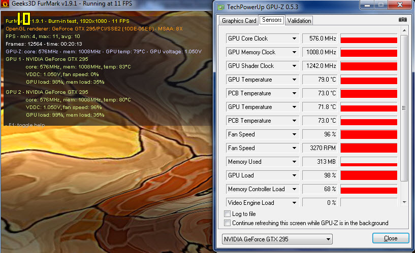 Die Grafikkarte scheint ansonsten keine Probleme zu haben, Stresstest mit FurMark stabil bei knapp 80°.