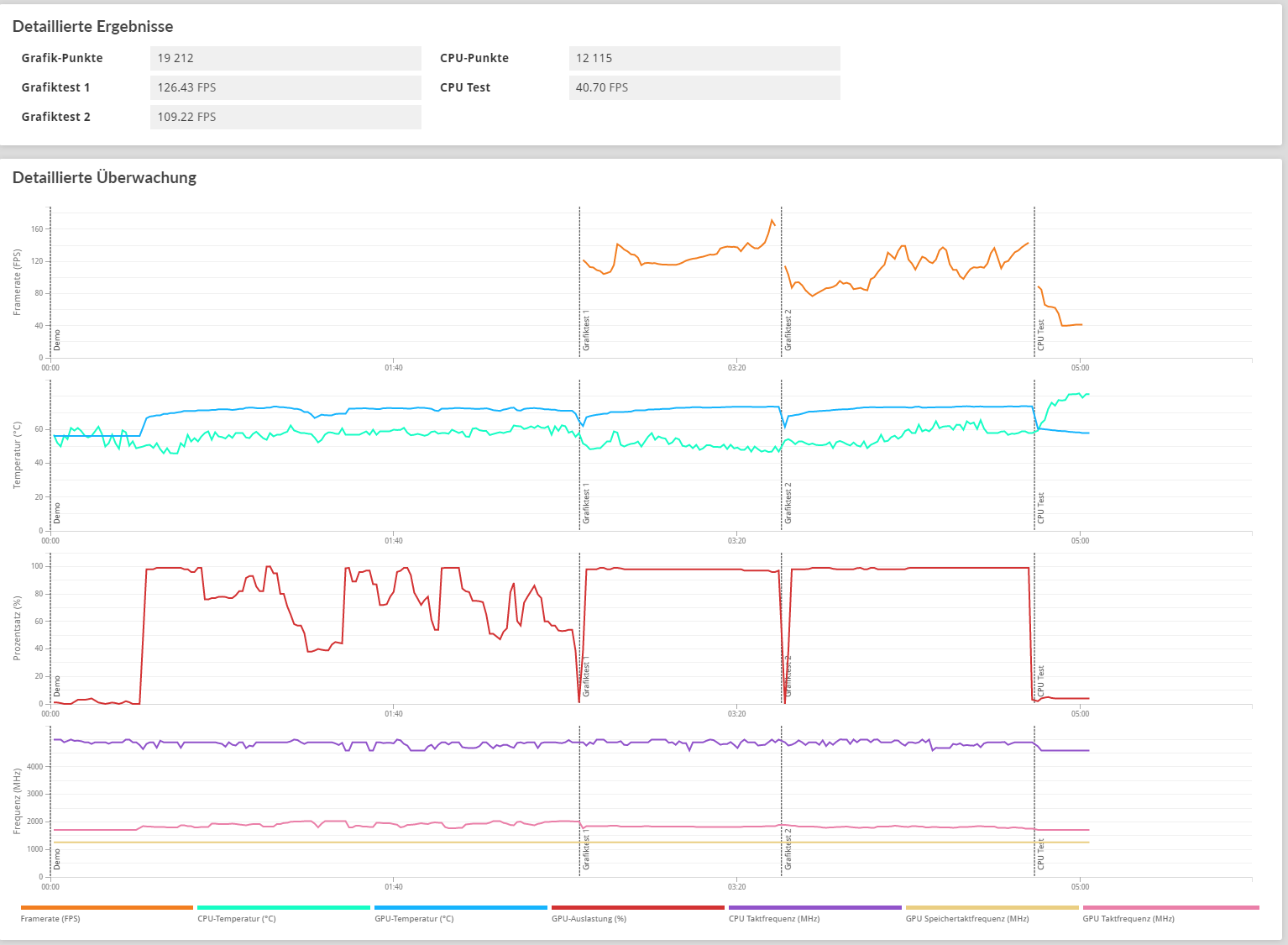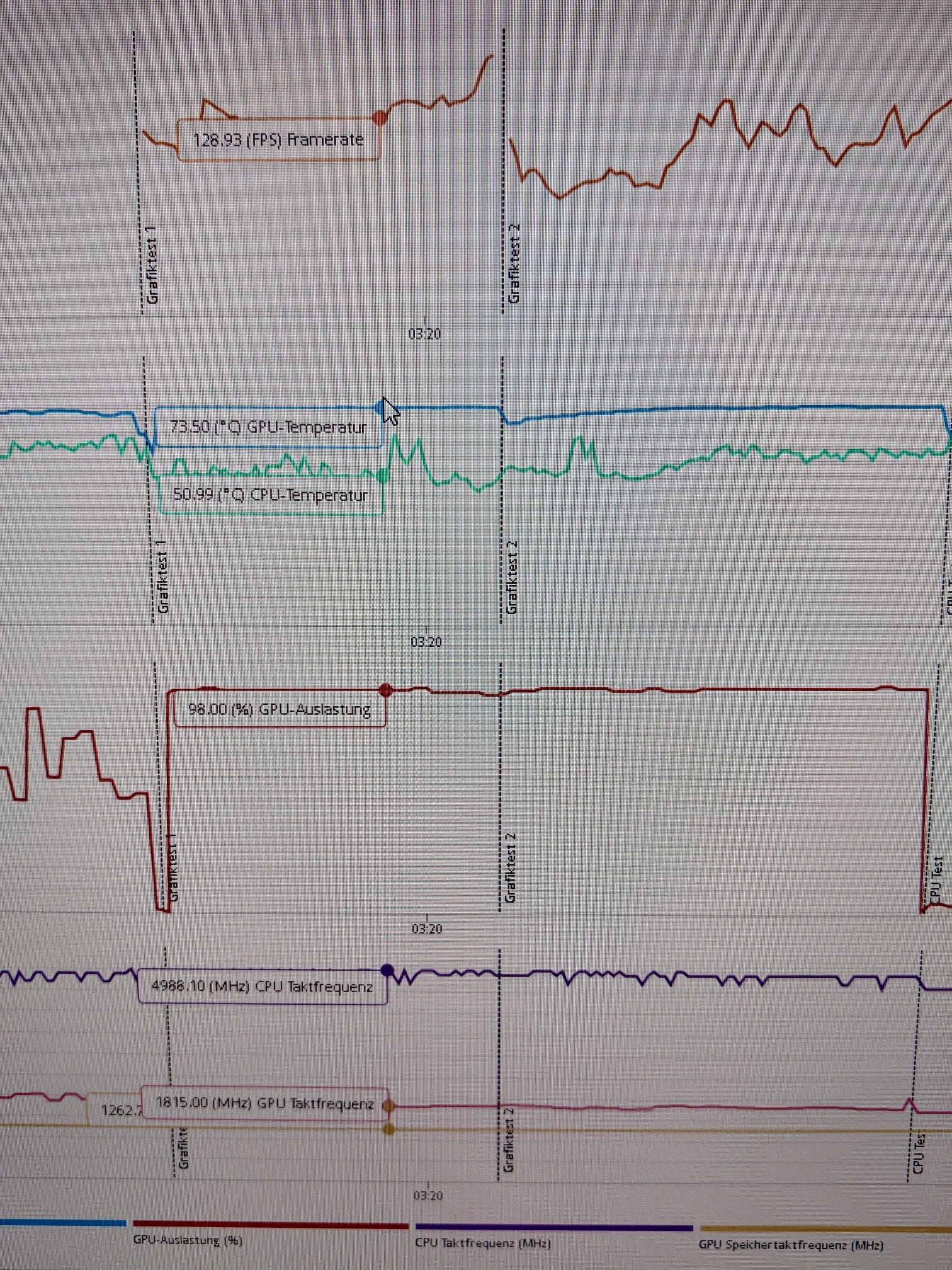 Nach dem 3 Durchgang scrollst du nach unten wenn du mit der Maus über drüber fährst siehst du die Frequenz, Temps und GPU Load%, siehe mein Anhang.