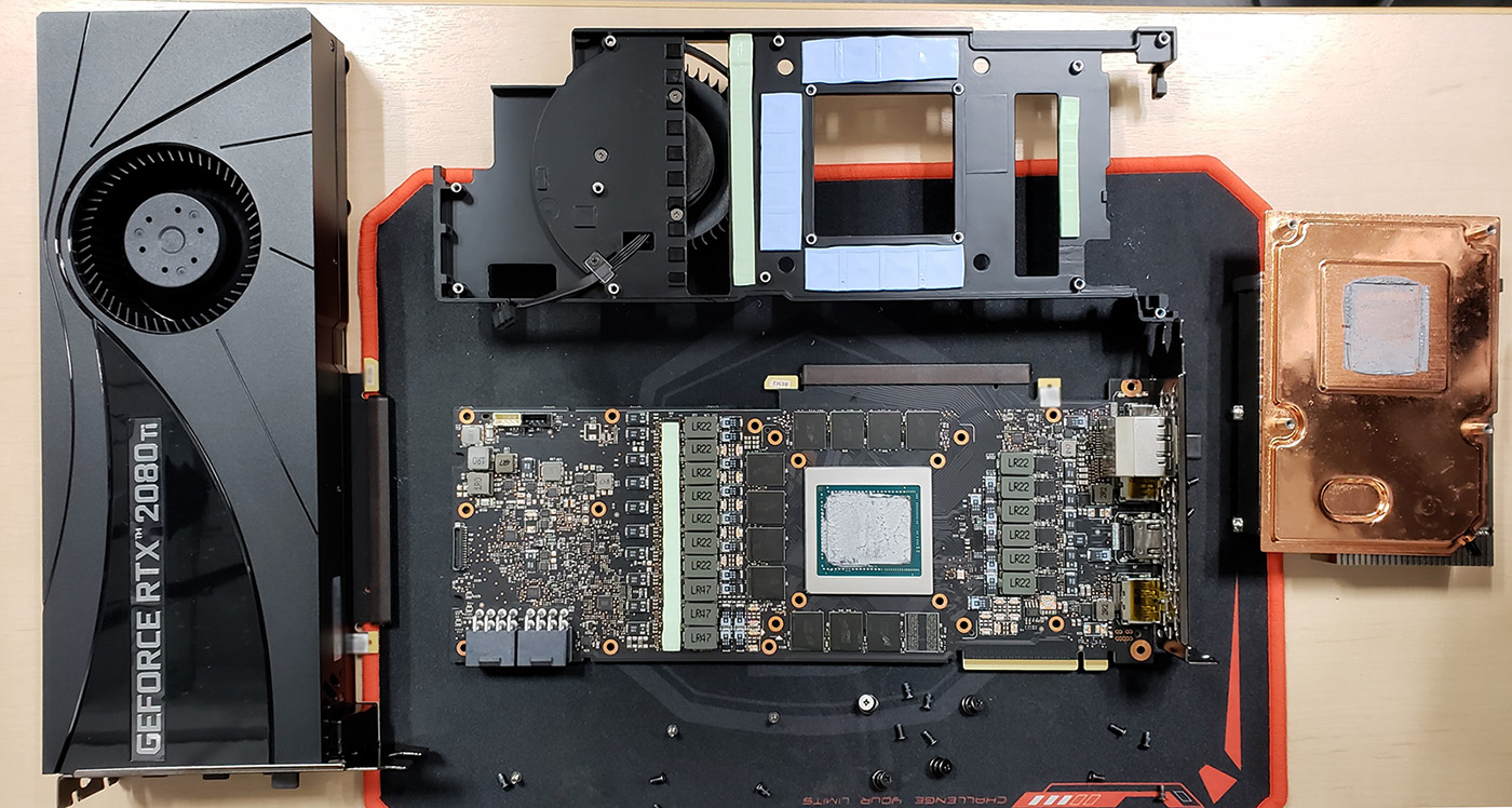 Ich versuche die oben genannte grafikkarte zu zerlegen um einen Wasserkühler darauf zu verbauen,nun habe ich da ein kleines problem das der aluframe auf der oberen seite wo die gpu ist sehr fest sitzthabe auch geschaut ob ich irgendwelche schrauben oder ähnliches vergessen habe dem ist aber nicht so .Hat schonmal einer von euch eine solche karte zerlegt und wenn ja wie ist er vorgegangen.