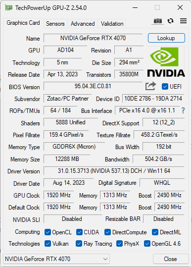 - Grafikkarte: ZOTAC GAMING GEFORCE RTX 4070 Twin Edge OC