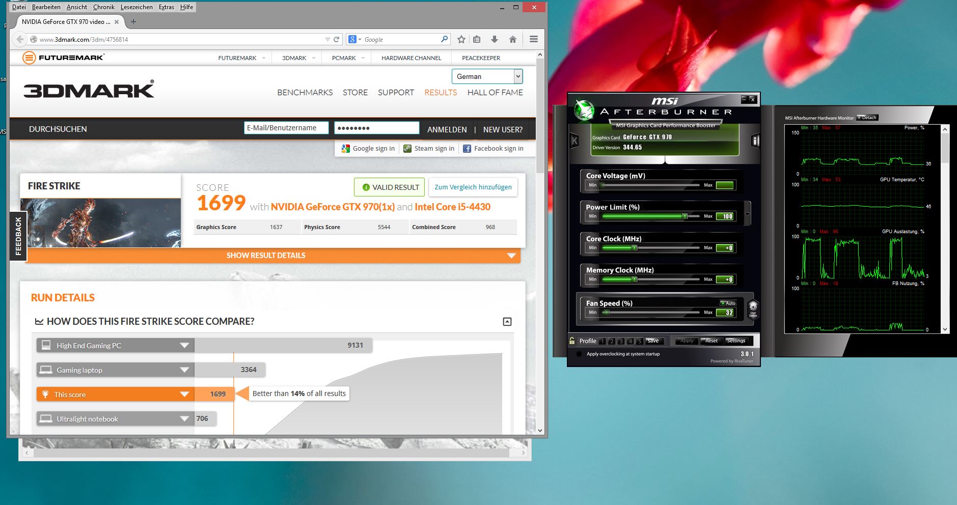 Nur leider habe ich ein Problem mit der Leistung der 970GTX. Egal welche 3D Anwendung ist Starte, die GTX ruft nicht die voller Leistung ab. Entsprechend sind auch die FPS in den 3D-Anwendungen.
